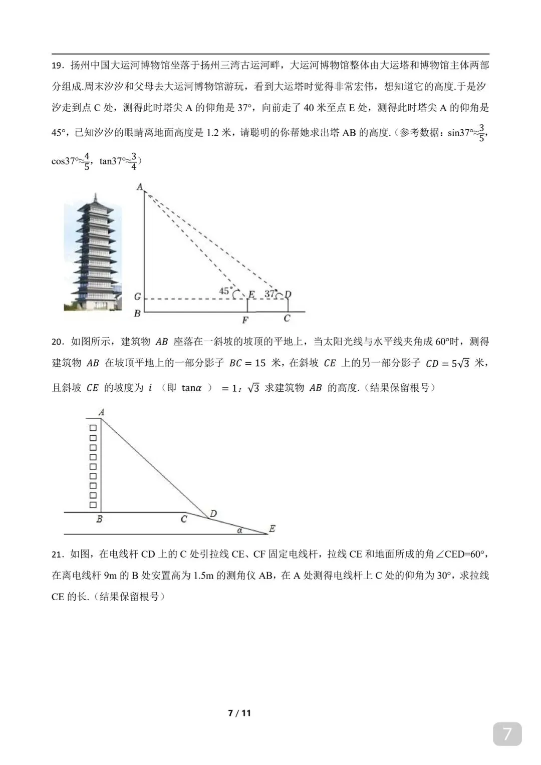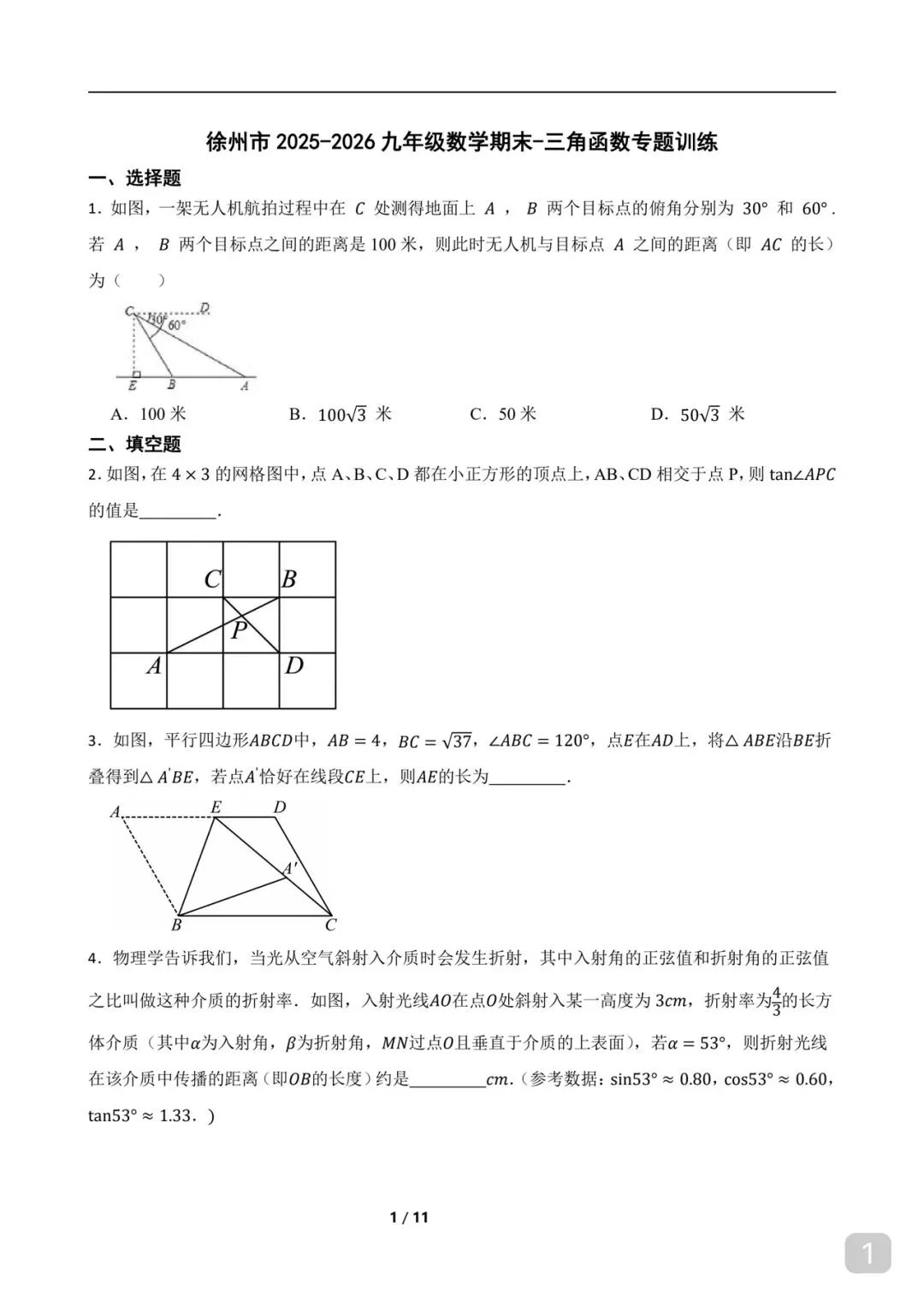 >徐州市 2025-2026 九年级数学期末-三角函数专项