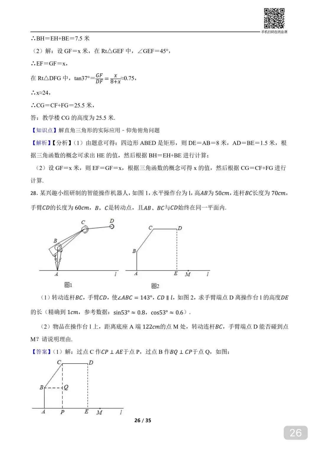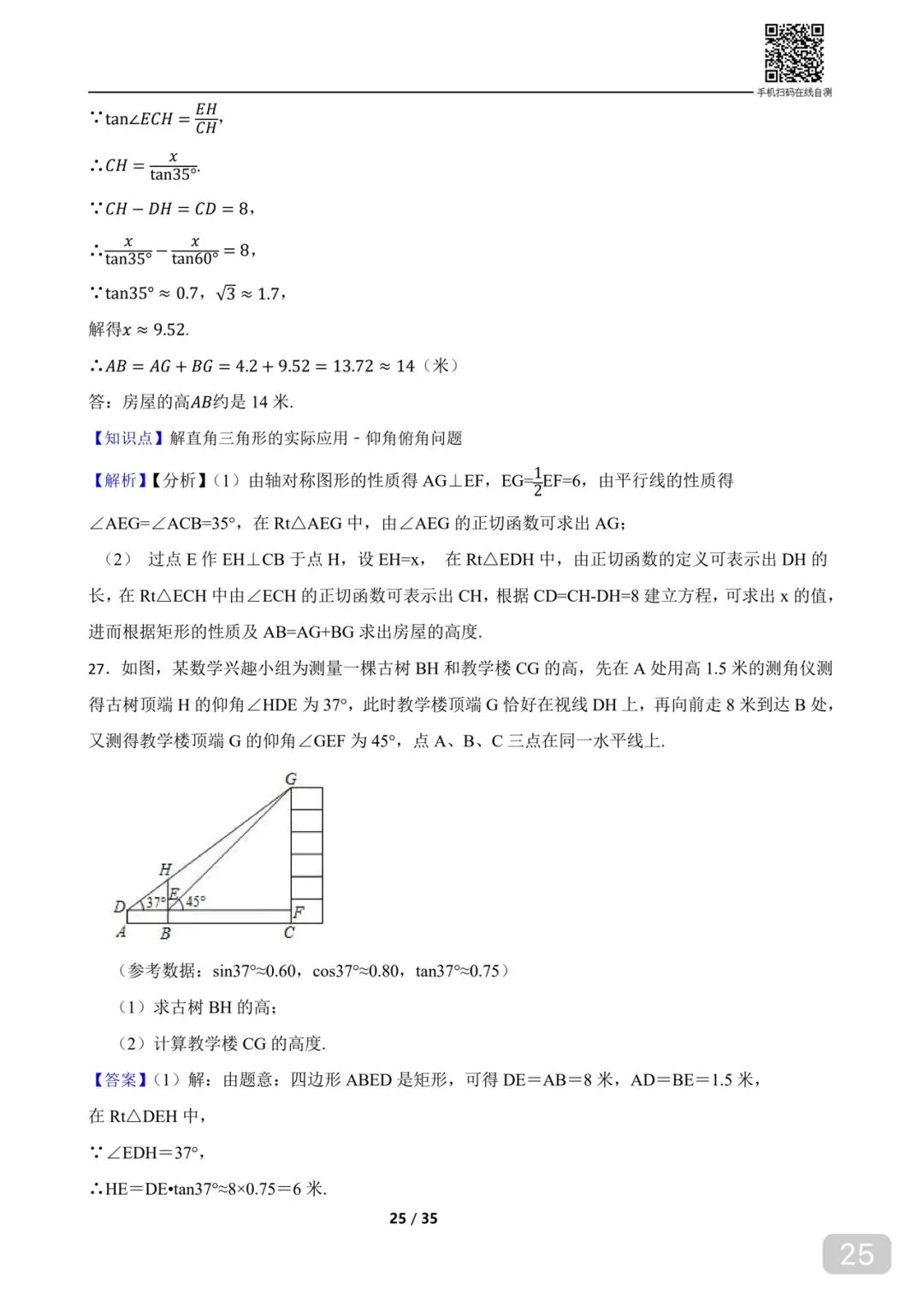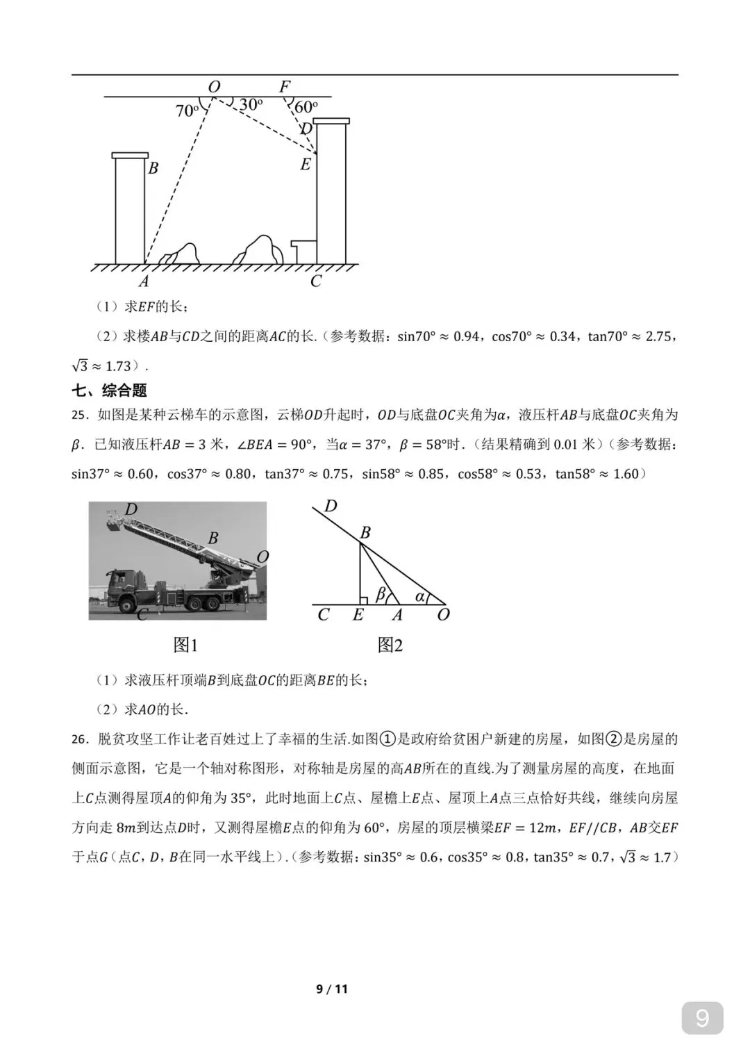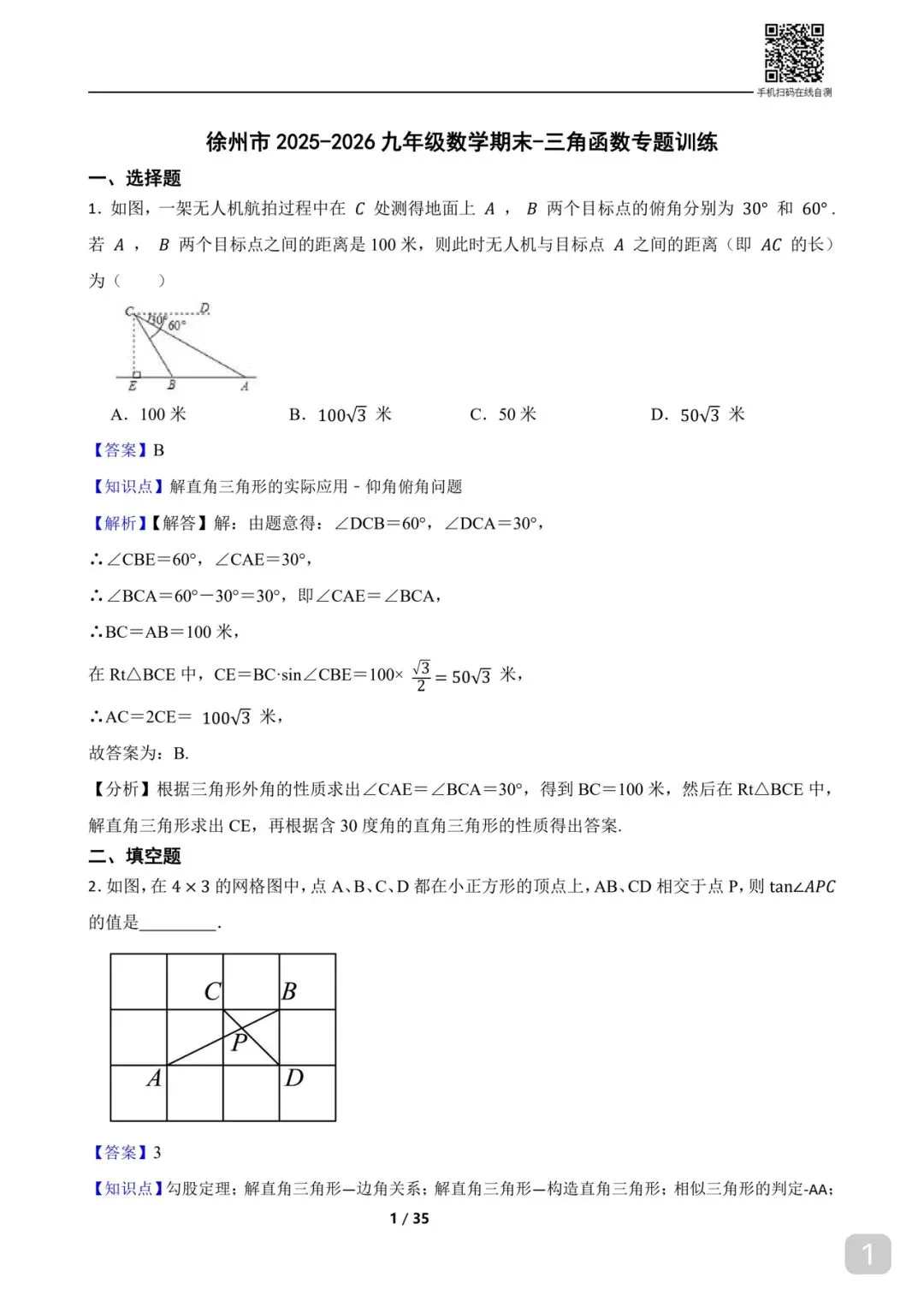 徐州市 2025-2026 九年级数学期末-三角函数专项