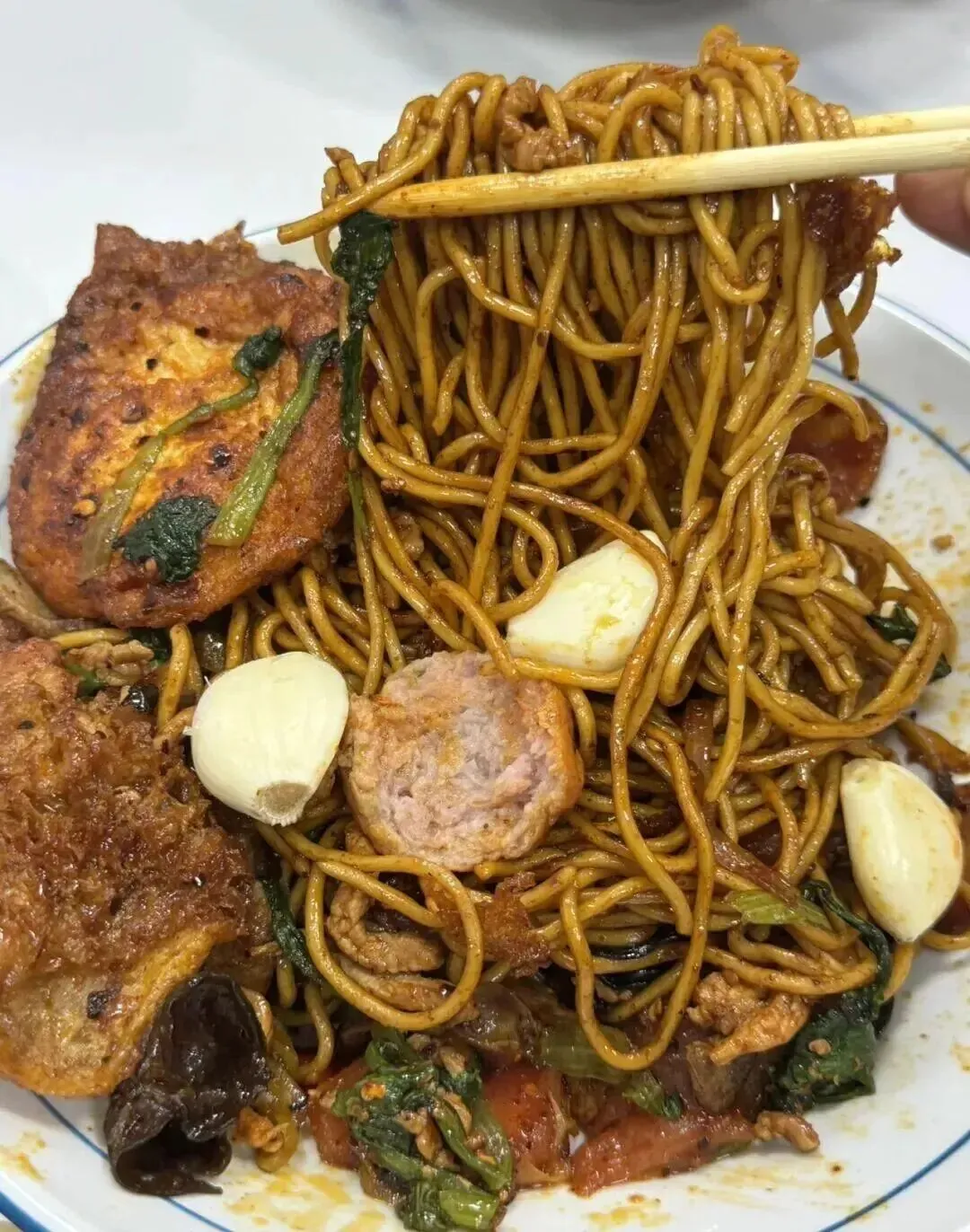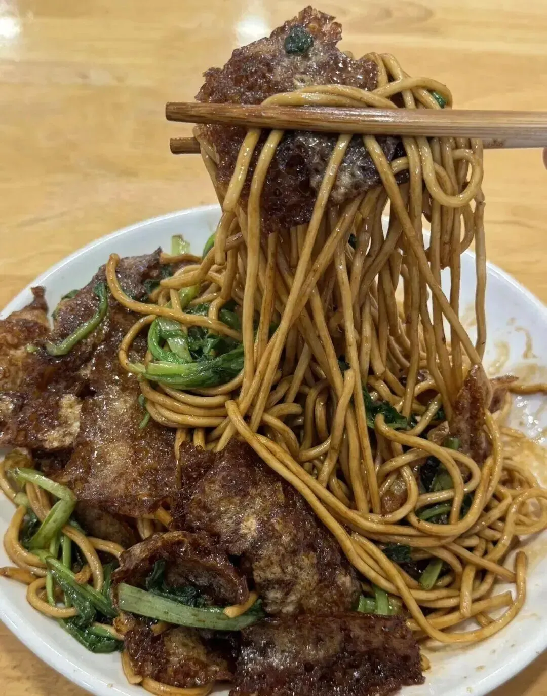 17块钱一碗,皮肚处理得很有意思,颜色深、酱香味浓。我是那种以前很嫌弃机器面炒着吃的人,但这一口下去,