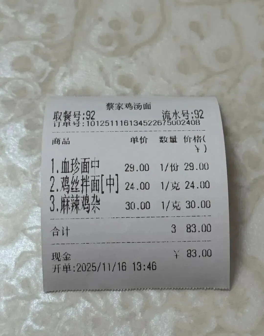 ,汤头鲜得掉眉毛,喝完也不会觉得口干。虽然这一顿下来两碗面加个凉菜要八十多块,在面界算贵族了,但看在面条劲道、汤底滋补的份上,偶尔给孩子改善伙食还是不错的。