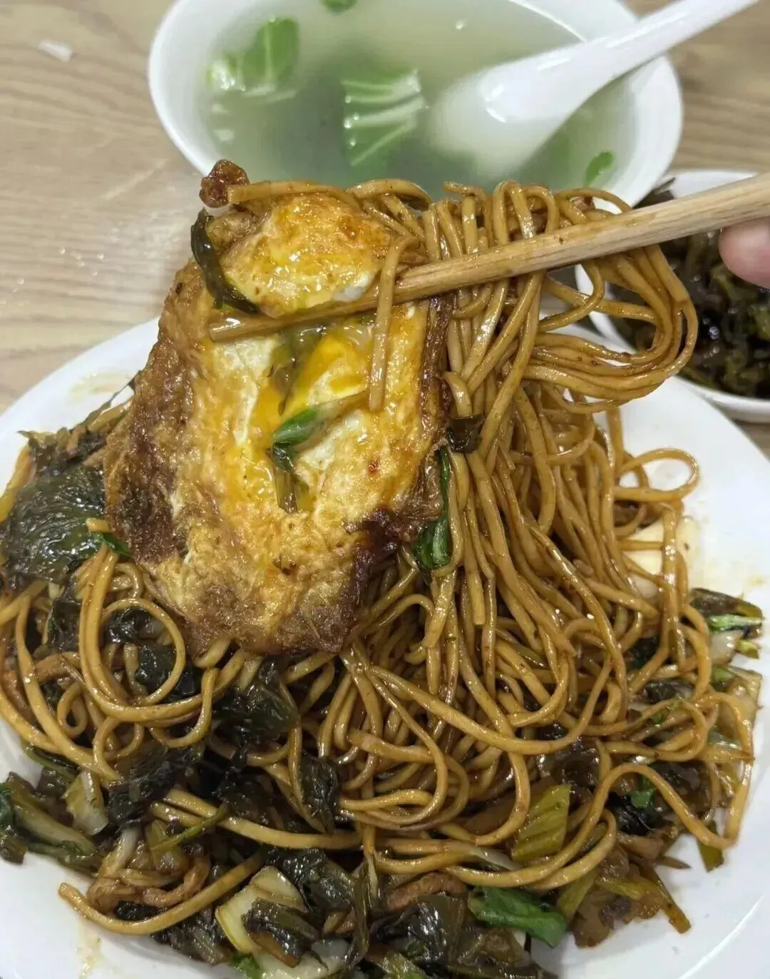 ,面条吸饱了汤汁变得软糯,虽然少了点杨记的那种镬气,但老人家吃着不费牙。