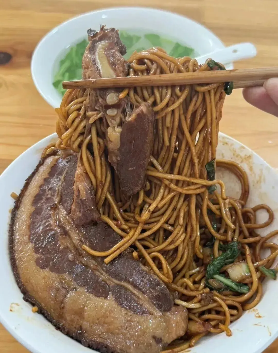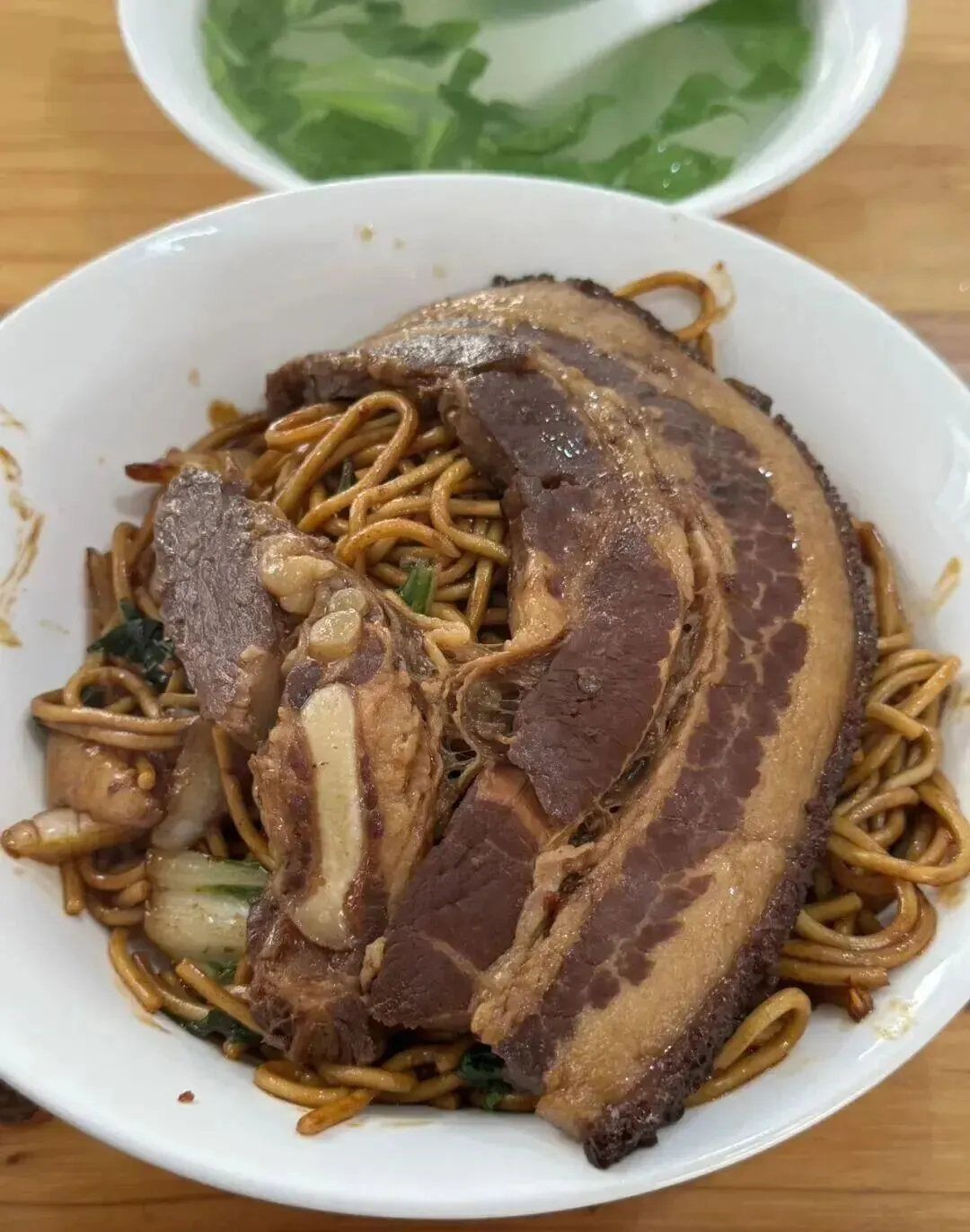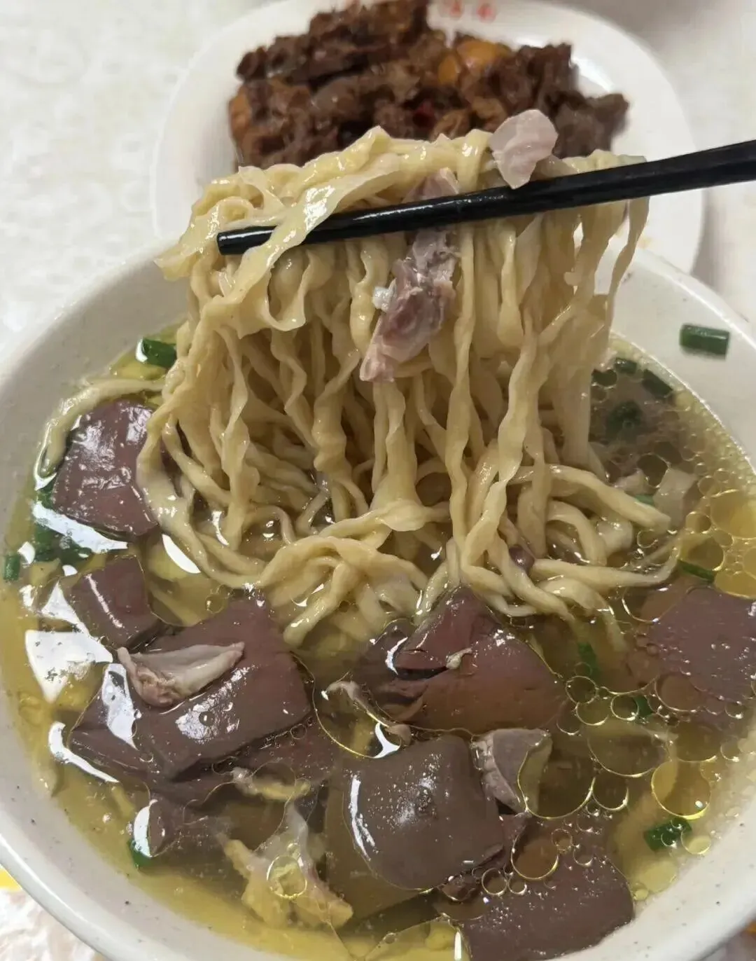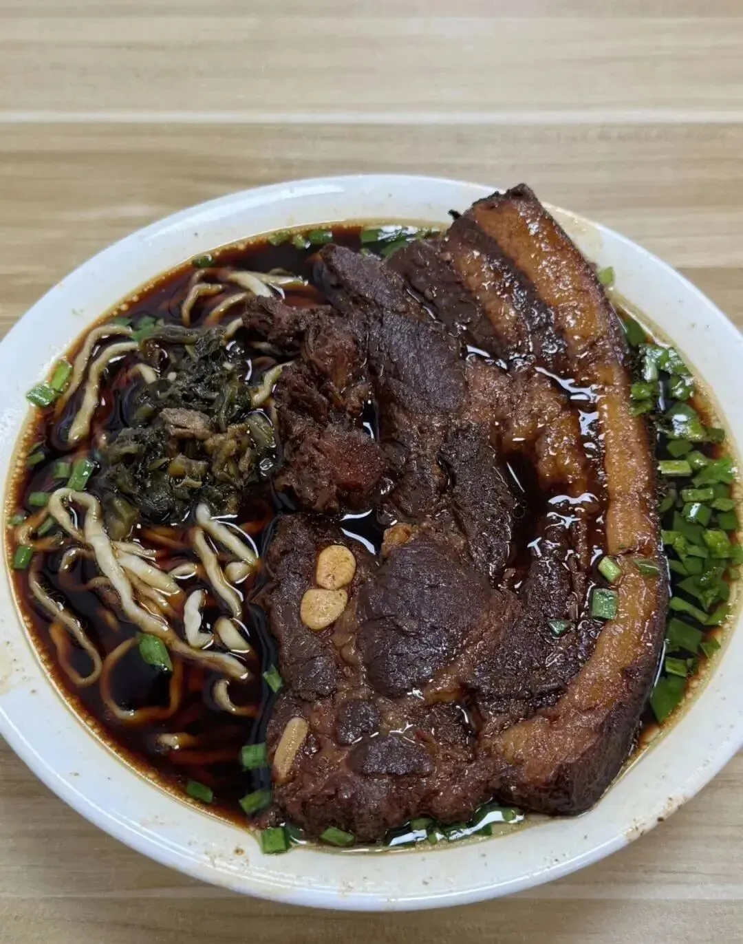 ,口感有点像镇江锅盖面。老卤汤虽然色儿深,但喝起来不齁甜。咱家那位干体力活或者带娃累了的时候,吃这一碗最解馋。虽然肉多,但炖得挺入味,吃完浑身暖呼呼的。