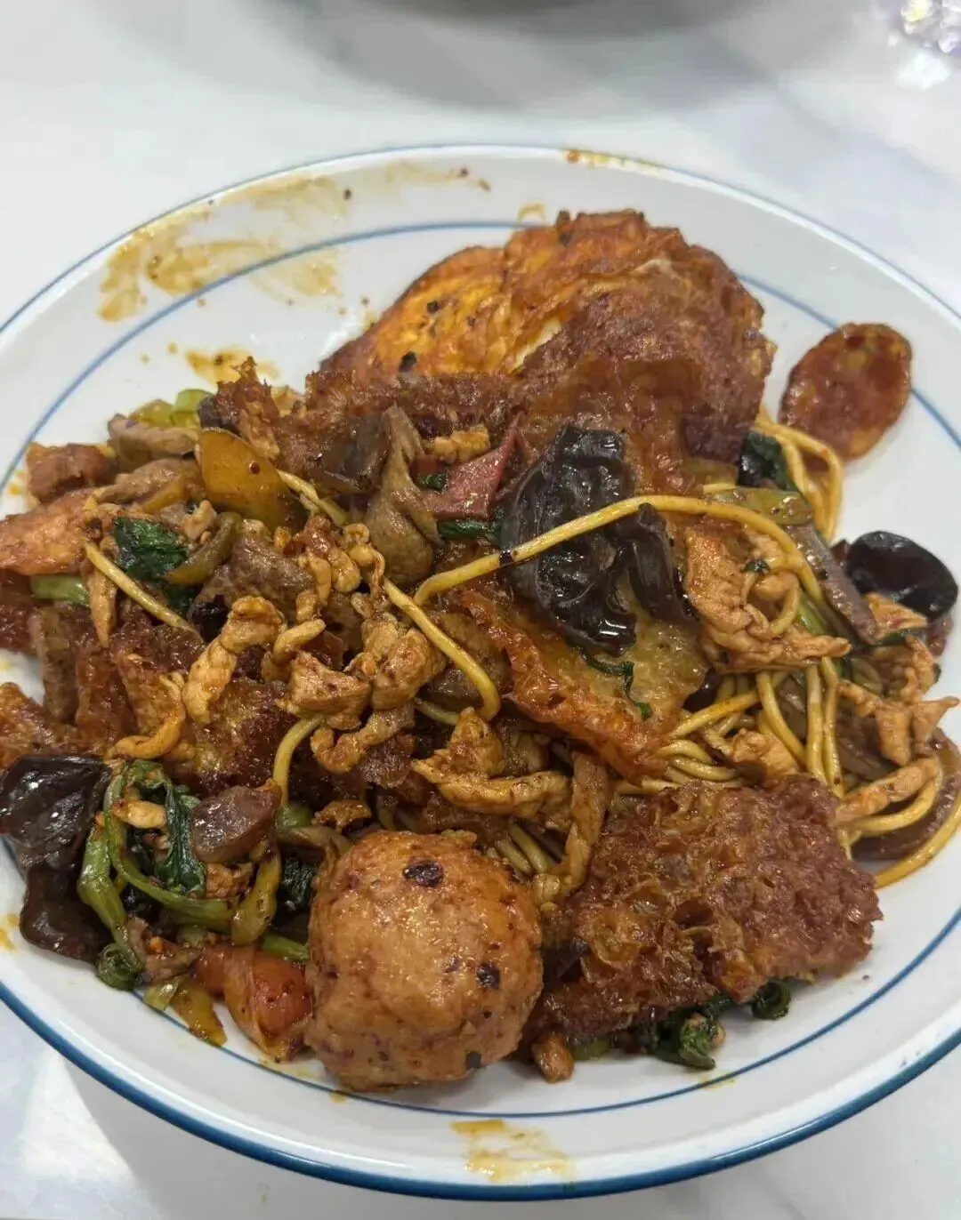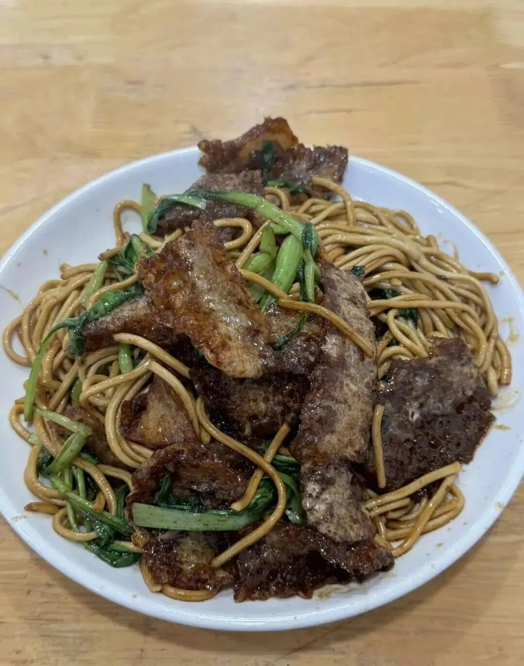 17块钱一碗,皮肚处理得很有意思,颜色深、酱香味浓。我是那种以前很嫌弃机器面炒着吃的人,但这一口下去,