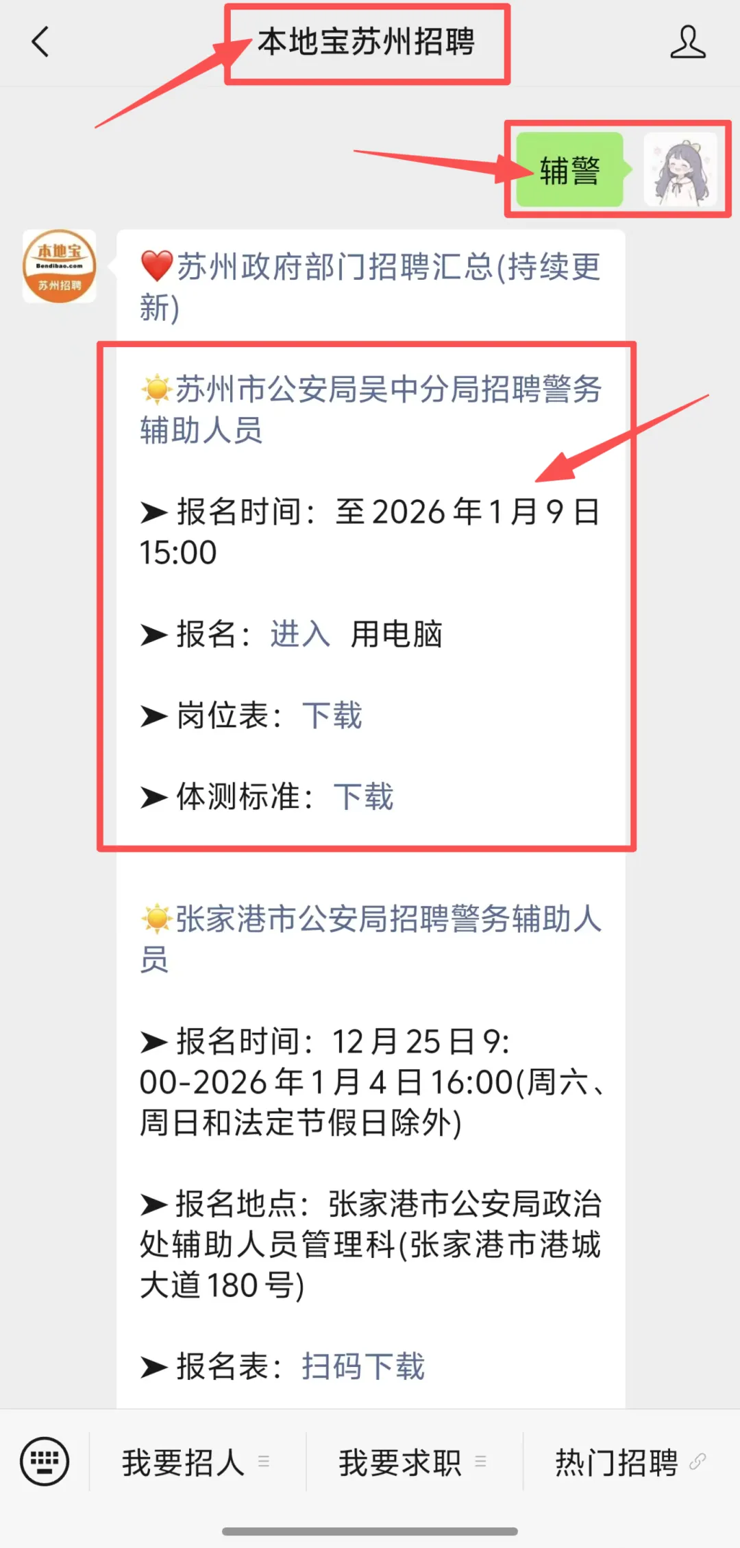 小编提醒:扫描下方二维码,关注【本地宝苏州招聘】公众号,在聊天对话框中回复【辅警】即可获取完整公告、官方报名入口、附件下载