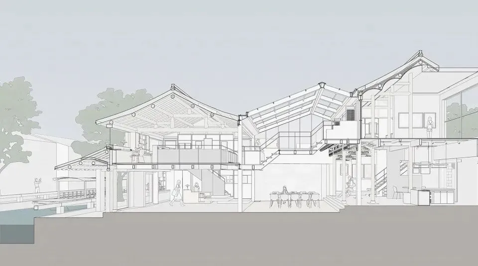 繁花书房作为当地政府出资打造的公共文化场所,原有空间功能由私人居住空间转向对公众开放的主题性公共空间,这种功能属性的转化要求建筑做出空间契合与身份主题双重锚固的回应。