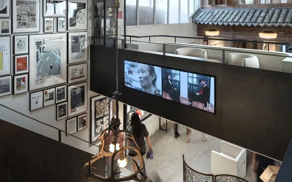 一二进整体采用化零为整的策略,后部暗弄并入,将原本封闭的一进与二进完全打开,形成以新建阳光厅为核心的整体大空间,包含阅读、展览、画廊、文学讲堂、艺术沙龙、咖啡等复合功能,同时通过增加一进二层挑台、二进画廊长窗和廊桥建立空间关系,构建上下两层三面围合的立体舞台式场所,为阳光厅举办文学讲堂和艺术沙龙等公共活动创造了生动的空间条件。