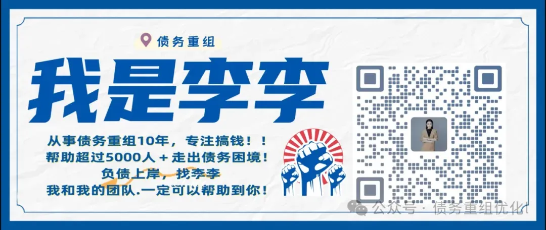 如果你的债务情况比较复杂,不知道选哪种方案,不知道如何避坑,欢迎在评论区留言,扫码下方二维码,我会发你避坑指南。如果你不知道怎么把自己的网贷置换成低息银行贷款,可以私信李李,了解各行产品进件大纲,也别忘了把这篇文章转给身边负债的朋友,帮他避开重组路上的各类坑!