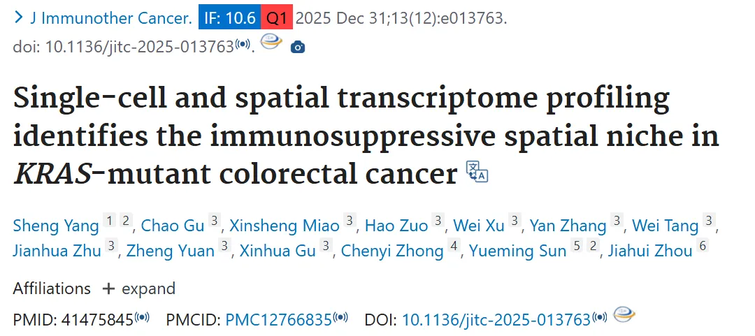 IF 10.6,苏州市立医院 4 样本空转 + 6 个公共数据,斩获 10.6 分 KRAS 突变 CRC 研究