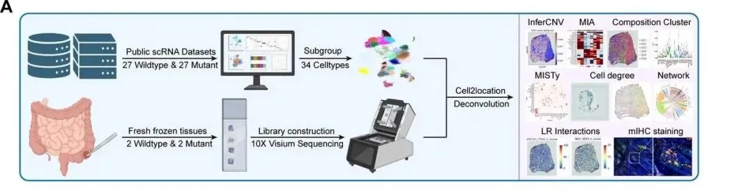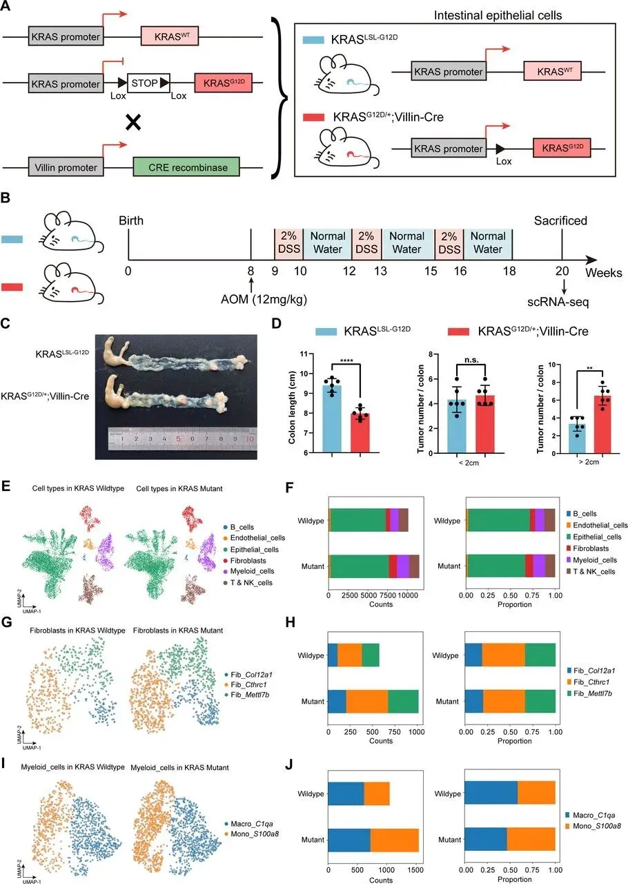 - 动物模型:构建 KRASG12D/+; Villin-Cre 条件性敲除小鼠,经 AOM/DSS 诱导建立结直肠癌模型,获取肿瘤组织进行 scRNA-seq。