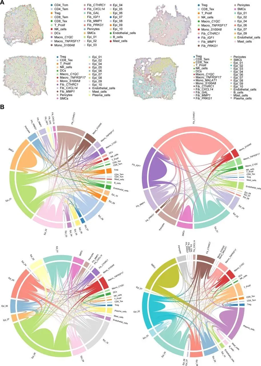 - 多重免疫组化(mIHC):针对 CEACAM1、CTHRC1、S100A8 等标志物进行 TSA 荧光染色,验证细胞共定位。