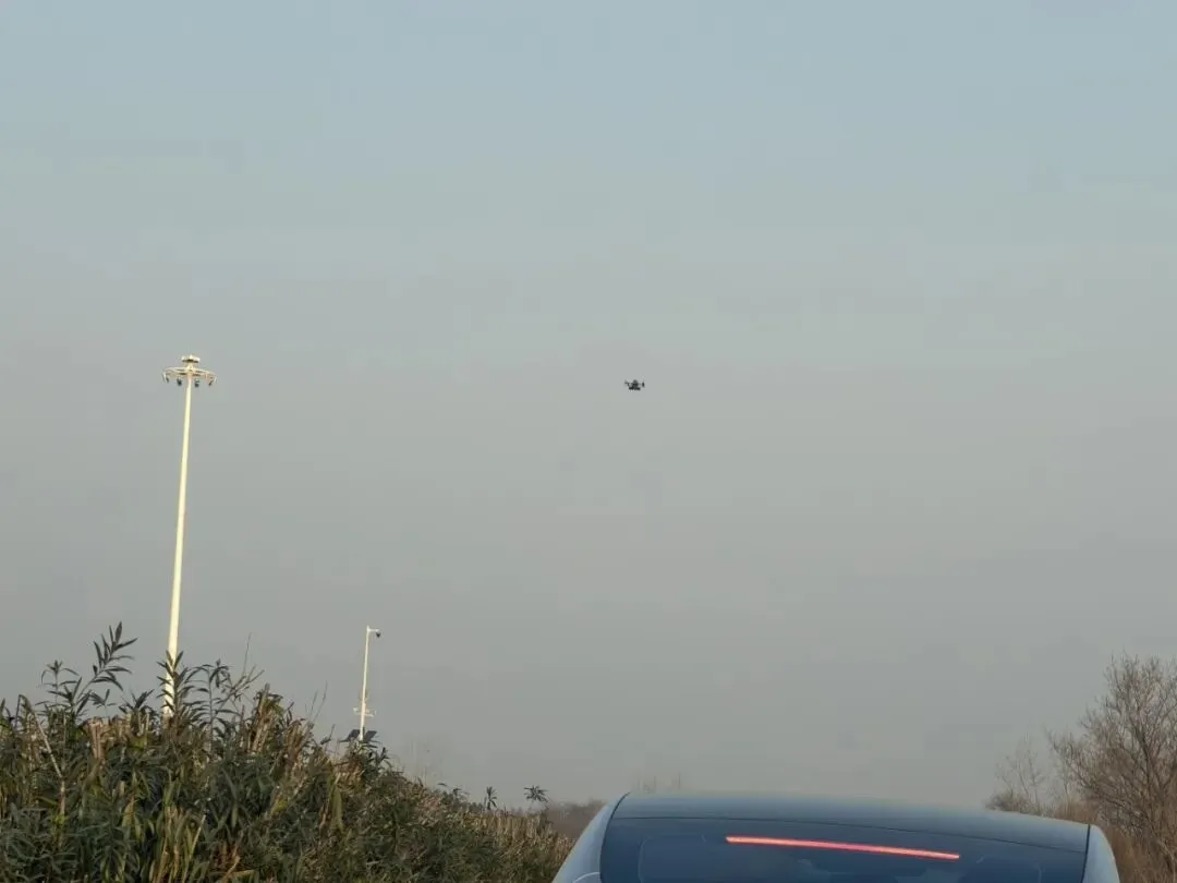 拥堵的车流中,操纵无人机的交警在执法~