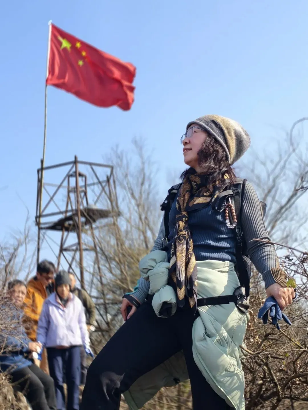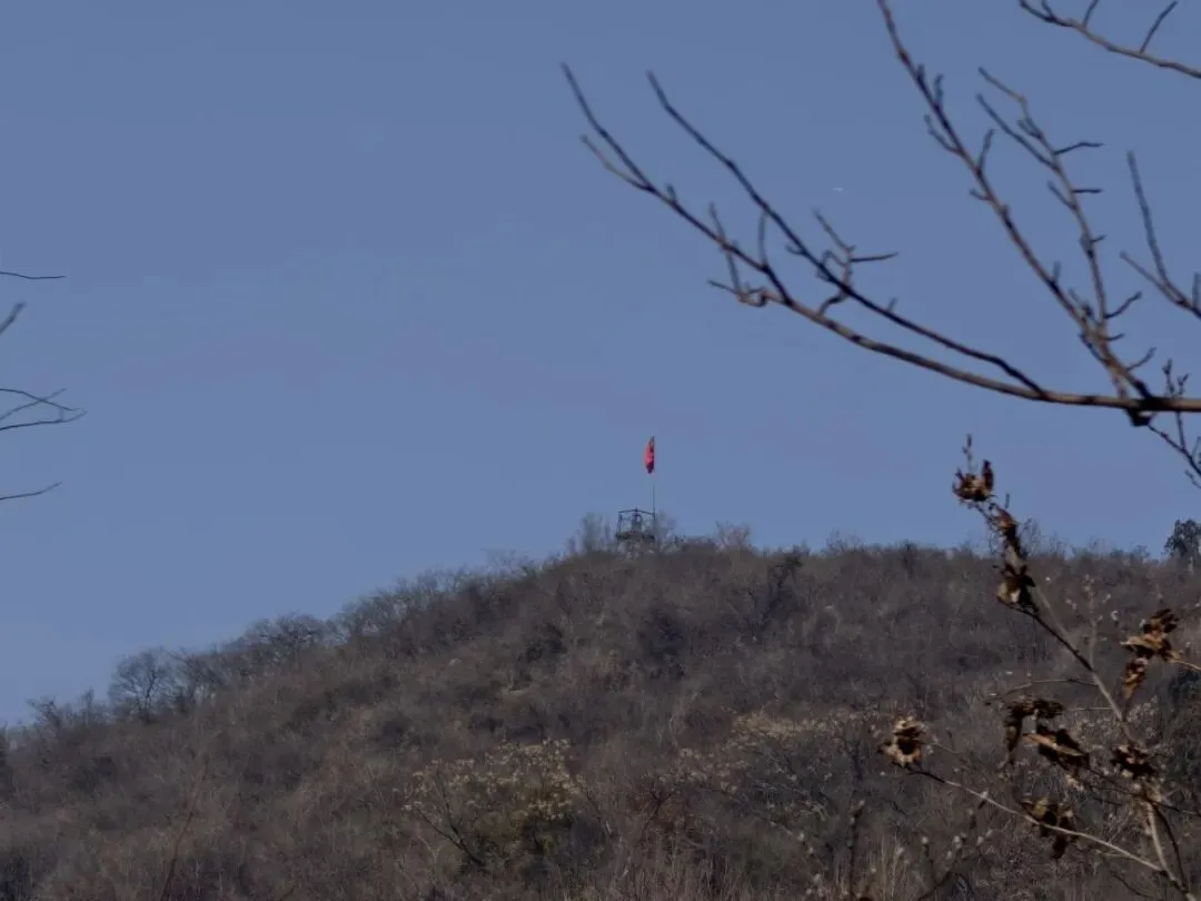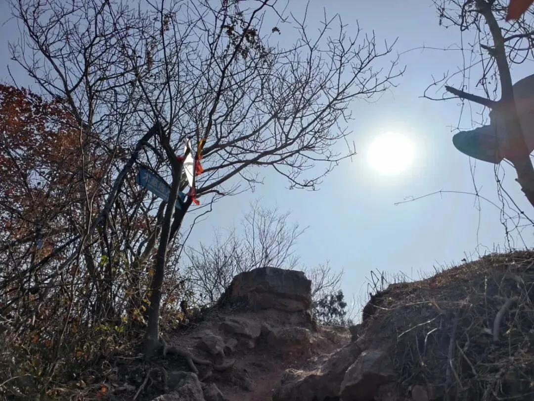 往山顶红旗位置走~