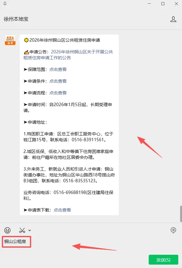 温馨提示:可以前往“徐州市铜山区人民政府”官方下载申请表,也可扫描下方二维码或点击下方名片关注【徐州本地宝】,在后台聊天对话框回复【铜山公租房】即可获取徐州铜山区公租房申请公告、申请表下载等信息~(注:本地宝仅整理官方信息,不负责申请相关)