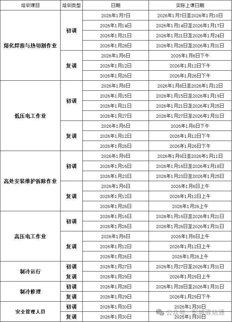 具体培训时间见下表👇👇👇