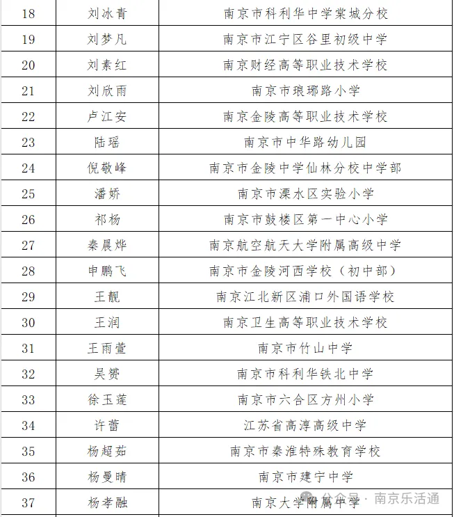 附件:“南京市优秀青年教师培育计划”第五批培育对象公示名单