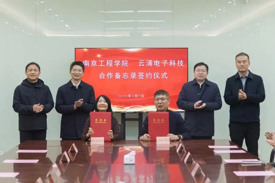 产学研对接活动中,在与会领导的共同见证下,江苏云涌电子科技股份有限公司董事长高南与南京工程学院电力工程学院、沈国荣学院院长刘海涛正式签署合作备忘录。双方技术团队围绕虚拟电厂资源聚合、储能关键技术等核心领域展开研讨,并就产教融合、大学生实习实践基地建设等达成合作意向。