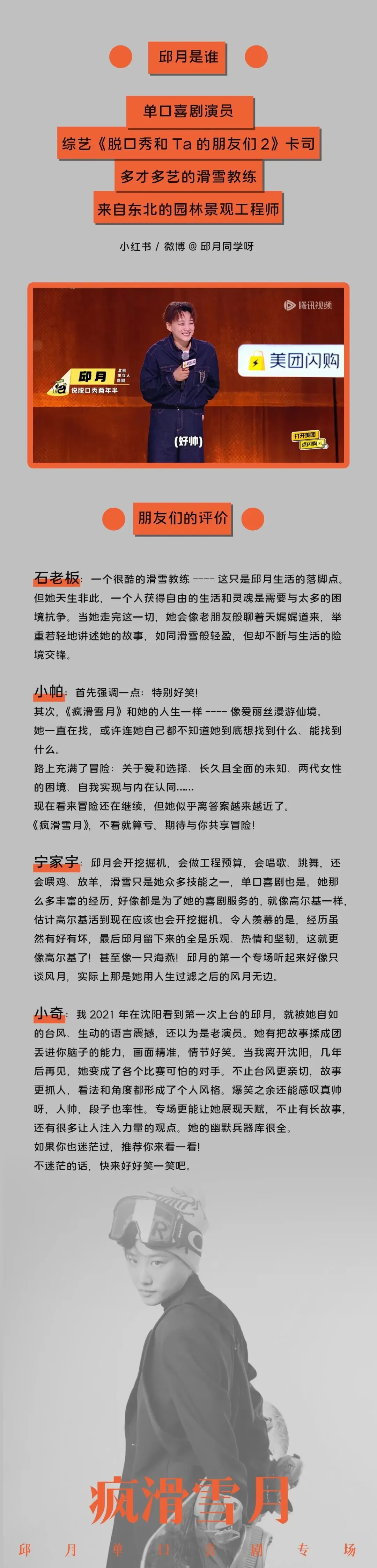 邱月,多才多艺、幽默帅气,更棒的是还有她独特的生命力!上过脱友后,邱月的表演更迎来全新的蜕变,这次一起来看!