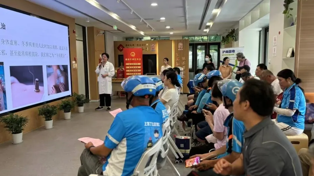 团队在日常门诊诊疗的同时,长期探索临床有效、可操作性强的慢性胃炎社区干预方案。依托家庭医护团队,针对周边居民、学生,定期开展健康科普宣教、饮食习惯指导、八段锦功法等社区宣传推广,积极参加黄浦“医”心志愿者服务,每年服务1000余人次,积极提高疾病知晓率和健康管理普及率。团队先后走进多家功能楼宇,为企事业白领进行医疗咨询、科普宣教、脾胃三伏贴等,提供了多形式、高品质的中医药健康管理服务,得到了一致好评。
