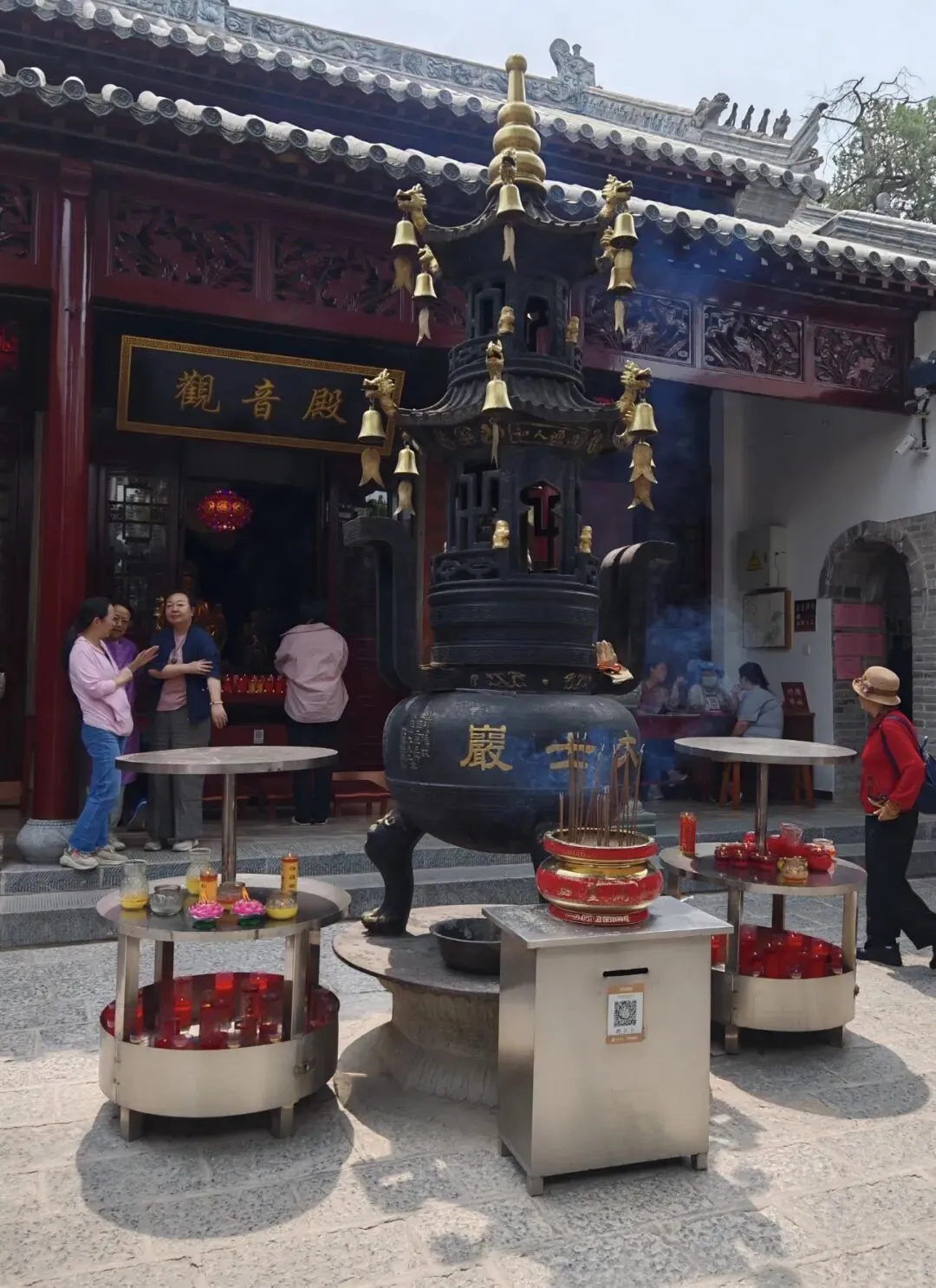 五十三参的故事:寺前的五十三参台阶,源自佛教"善财童子五十三参"的典故。相传善财童子为求佛法真谛,先后参拜了五十三位善知识,最终修成正果。信众每登上一级台阶,便象征着一次修行,五十三级台阶走完,便寓意着修成正果,得到观音菩萨的庇佑。