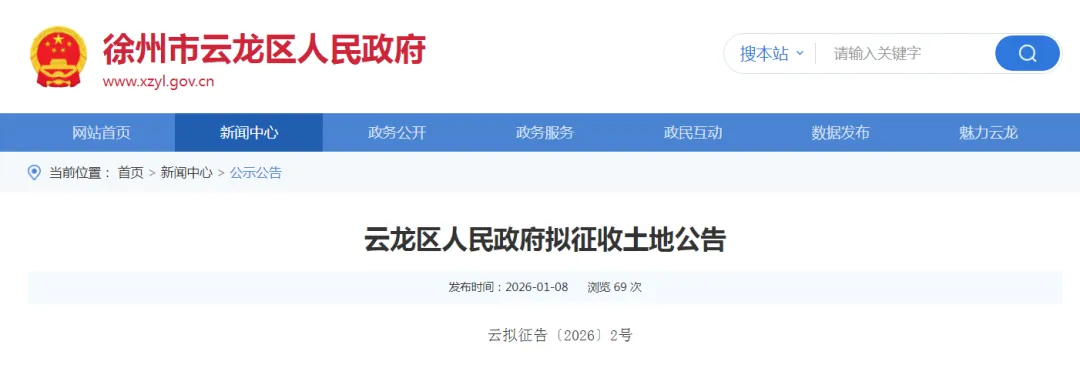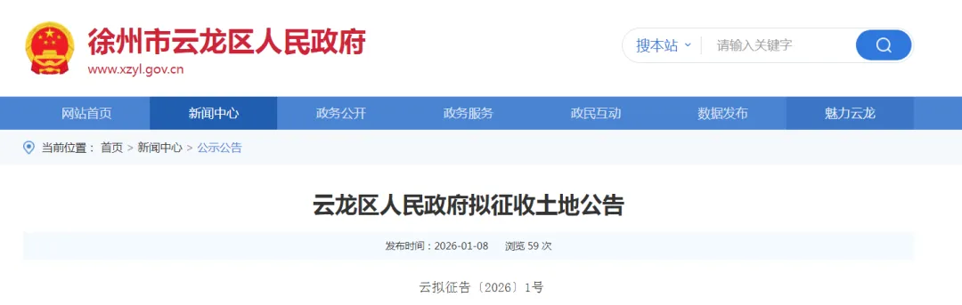 根据《中华人民共和国土地管理法》《中华人民共和国土地管理法实施条例》《江苏省土地管理条例》有关规定,因公共利益需要,经徐州市云龙区人民政府决定,启动土地征收工作。现将有关情况公告如下: