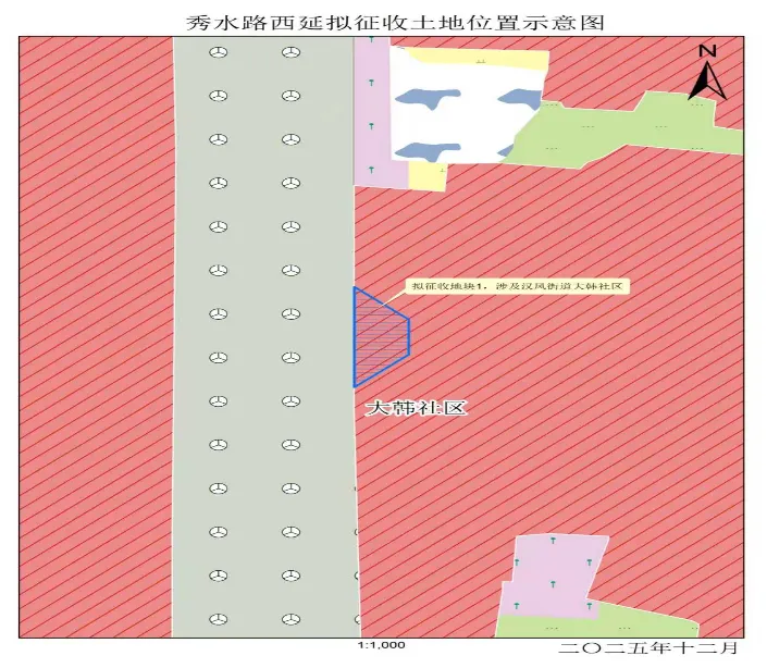 本次拟征收土地位于汉风街道办事处大韩社区范围内。拟征收土地位置详见附图。