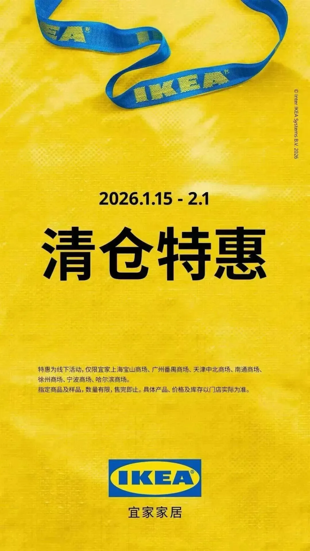 徐州宜家2月2日闭店,正在清仓!