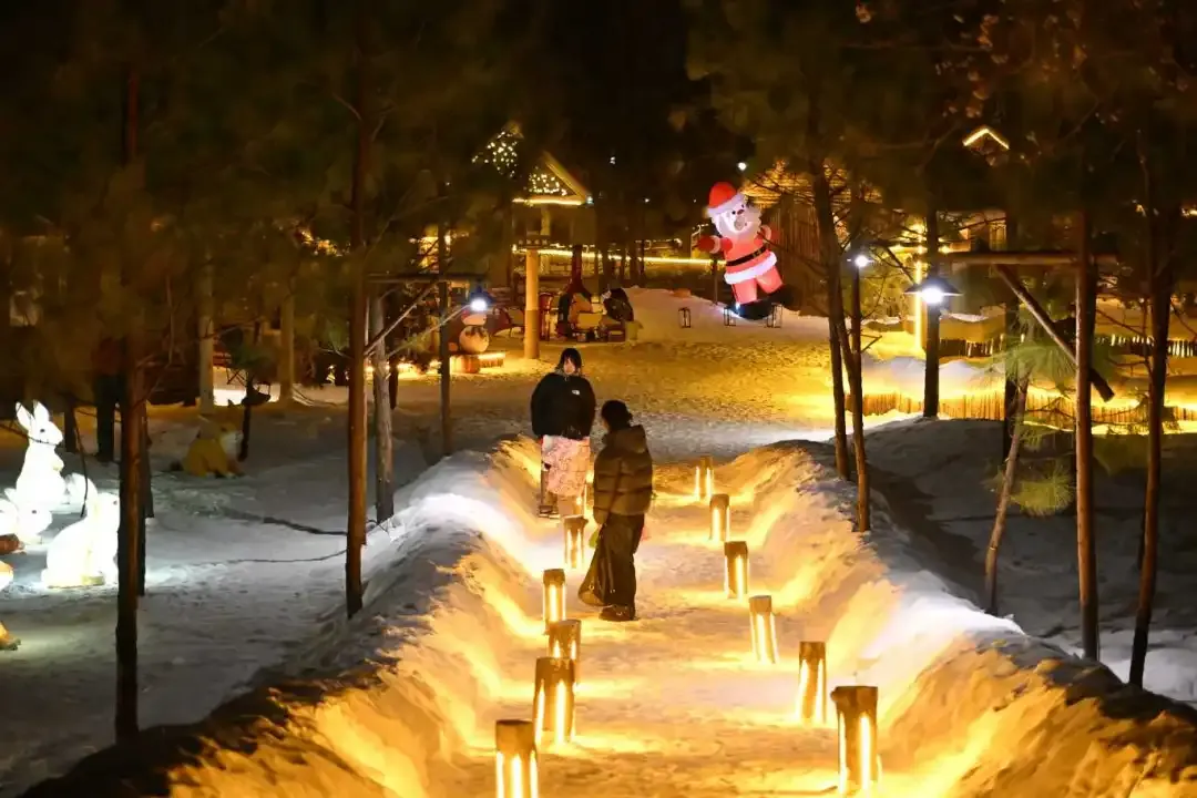 白天,孩子们在戏雪乐园里追逐打闹;傍晚,家庭游客在灯光与雪景中拍照留念;夜间,演艺与焰火点亮寒冬的城市边缘。