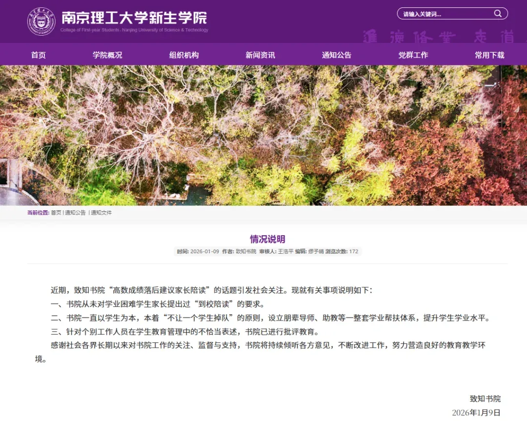 南京理工大学致知书院1月9日发布情况说明。