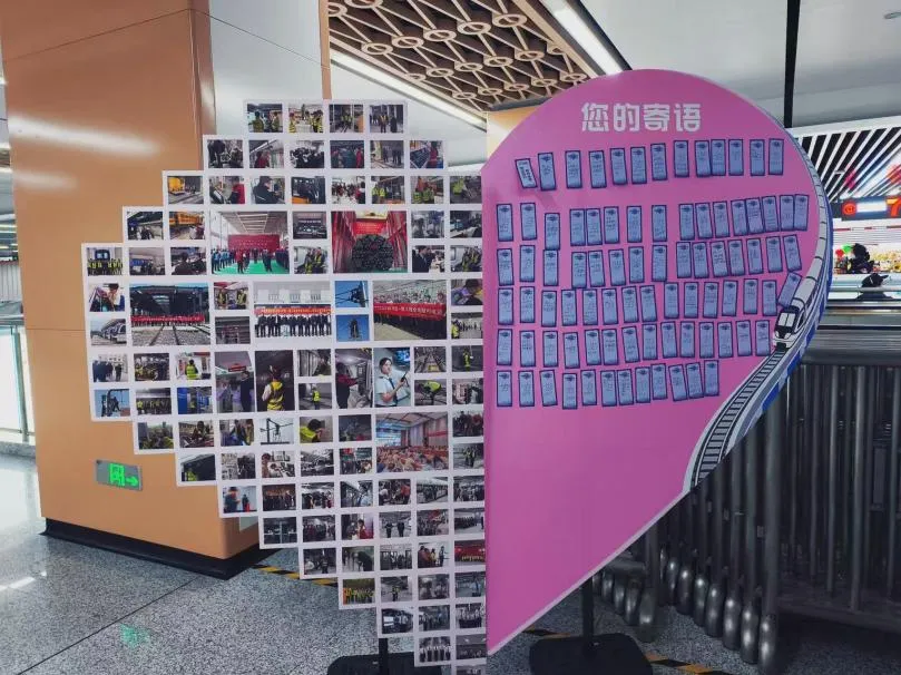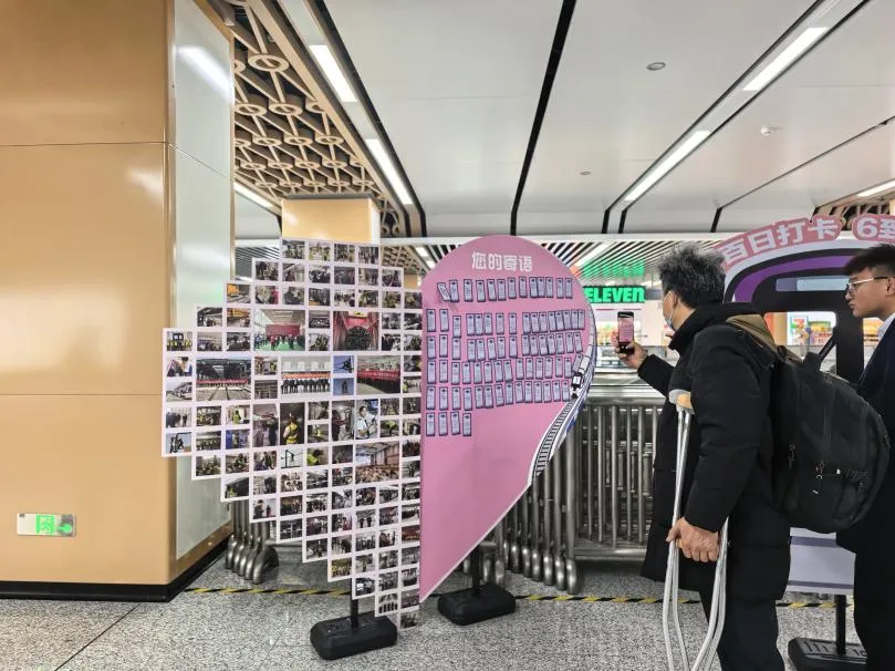 活动现场,一面精心打造的“心意墙”成为乘客瞩目的焦点。展板精心设计的“左心房”区域,100张珍贵照片依次陈列,既有建设者们在盾构掘进、车站封顶等攻坚时刻的坚毅身影,也有运营以来站务人员温情服务的动人瞬间,一帧帧画面串联起徐州地铁6号线从蓝图绘梦到畅行全城的璀璨征程。