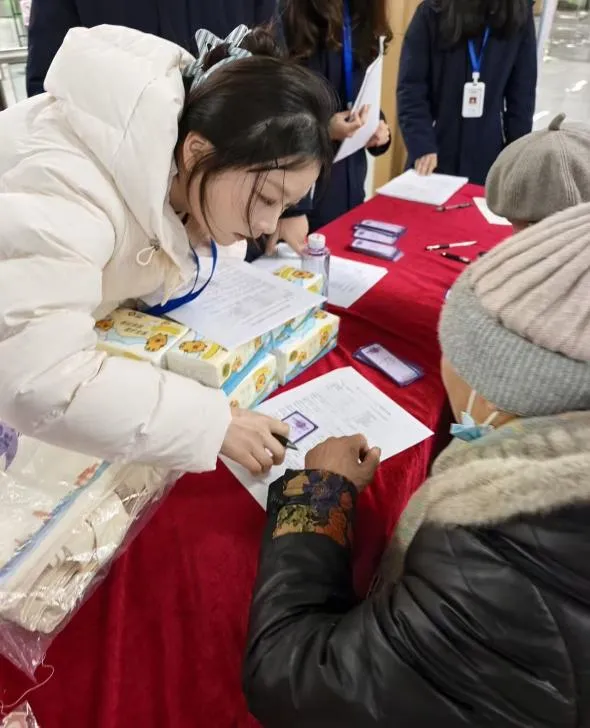 互动环节,轻量化问卷收集点前,工作人员耐心引导,为老年乘客等特殊群体提供一对一协助,认真聆听市民的出行心声。主题打卡墙前,一张张笑脸定格美好,见证着市民与地铁的专属情缘。“我的地铁心意”征集区更是热闹非凡,大家执笔抒怀,将对徐州地铁未来的憧憬凝于笔端,一张张心意卡贴满墙面,汇成一片爱意涌动的星河。