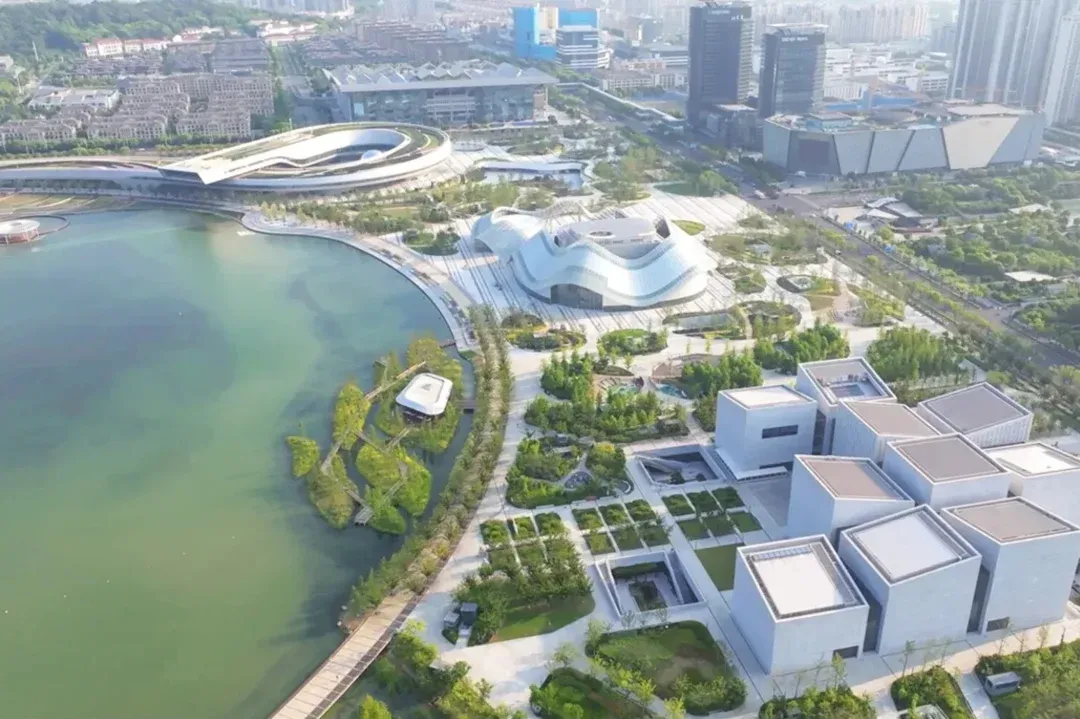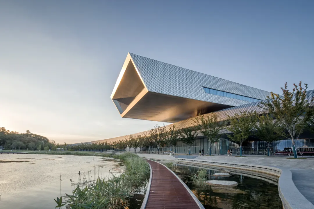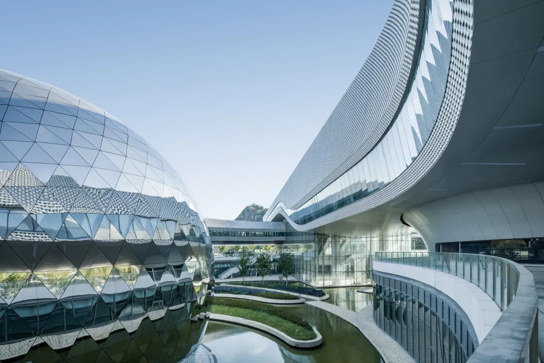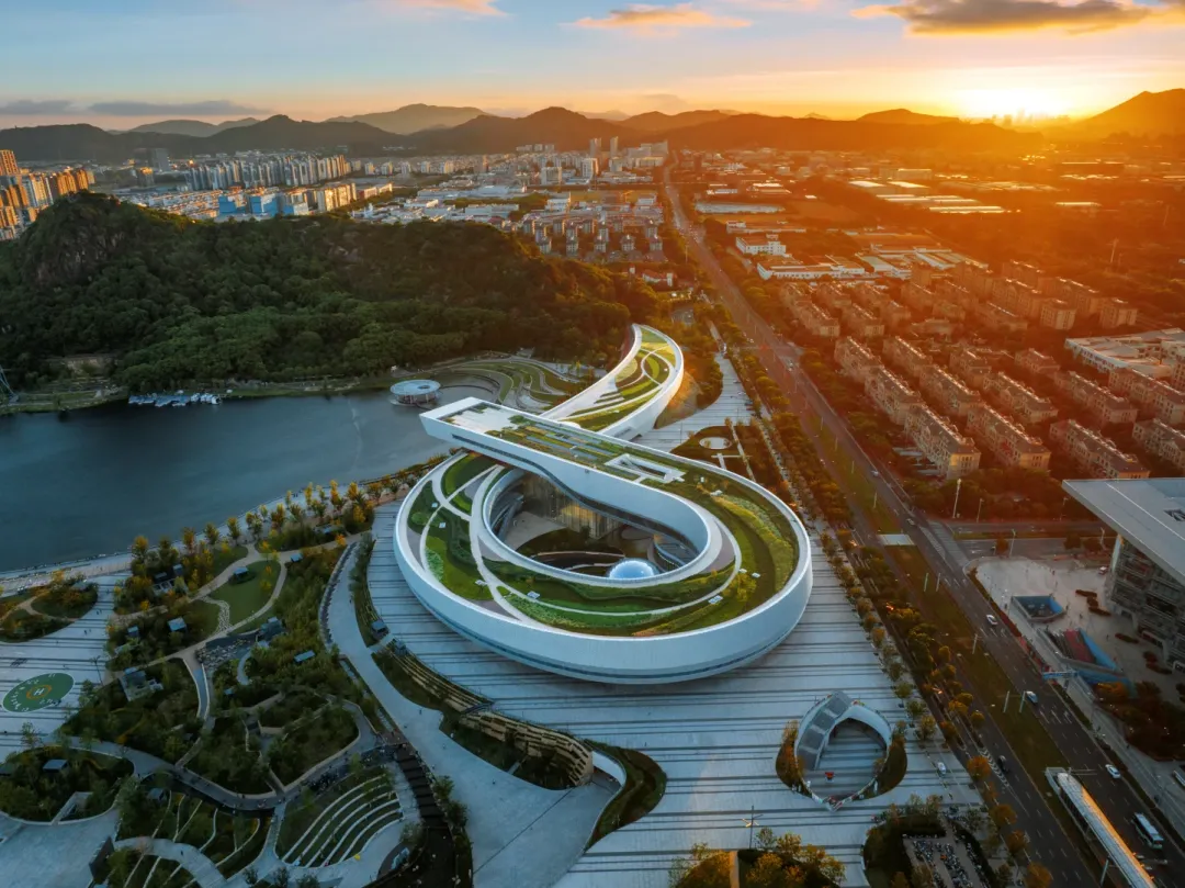 科技馆由Perkins&Will设计,以“玉如意”与“银白飘带”为灵感,融入地域文化元素。整体形态宛如一幅舒展的苏州丝绸,流畅的金属立面在光影变幻中展现江南文化的温润诗意。