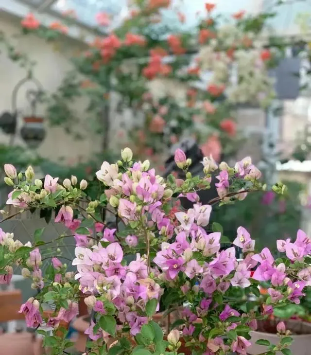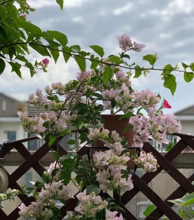 顶楼最大的问题其实就是晒,尤其南京这地儿,夏天的太阳能把人烤熟。她刚开始也担心花会被晒蔫。后来发现,三角梅和天竺葵这俩家伙,简直是顶楼小分队的“扛把子”。三角梅不怕晒,温度高的时候照样开得欢,连50度都能扛。我朋友还养了绿樱三角梅,这货颜色一天一个样,绿的、粉的、深粉轮着来,楼下张阿姨看了都说“像变魔术”。天竺葵略娇气点,实在太热的时候就搬回屋里,等秋天凉快点再搬出来,也是能一年四季有花看。