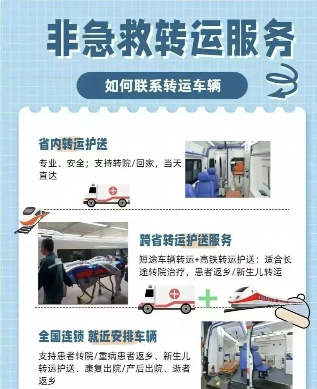 紧急预约热线:4009962227无论何时何地,只需一个电话,我们立刻出发,为您的健康保驾护航,让每一次转运都平安顺利,温暖舒心。