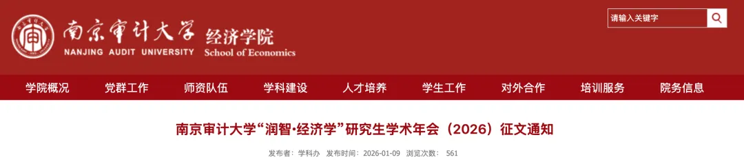 【征稿|校外相关学科的研究生,可参会】南京审计大学“润智•经济学”研究生学术年会(2026)