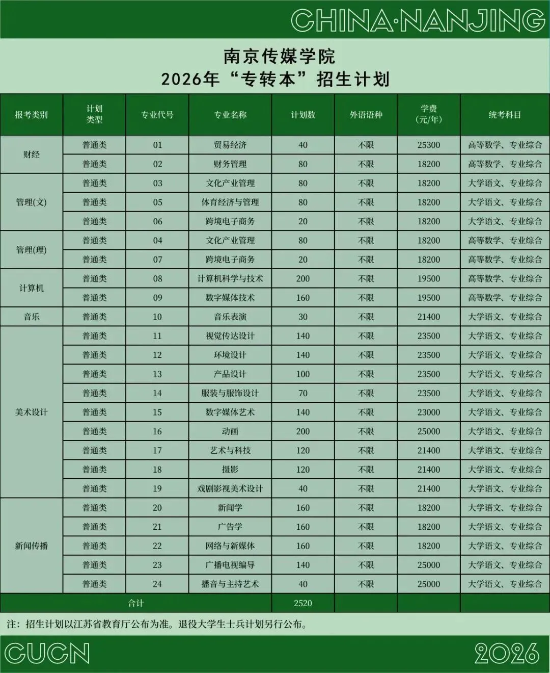 当前位置:首页>南京>权威发布 | 南京传媒学院2026年“专转本”招生简章