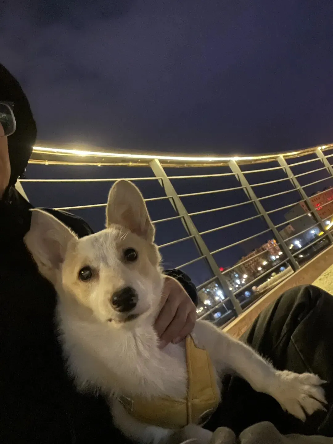 某一个下了雪的晚上,和西瓜出去的路上,它捡了一束向日葵,一束鲜艳的、在雪地里格外明亮的向日葵,叼着走了好远的路。