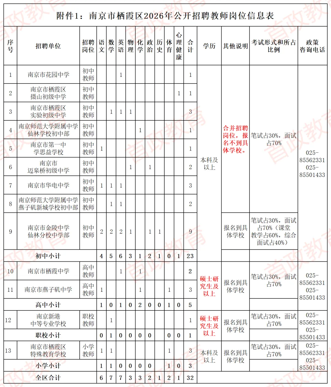 栖霞区教育局人事科:025-85562331、025-85501433