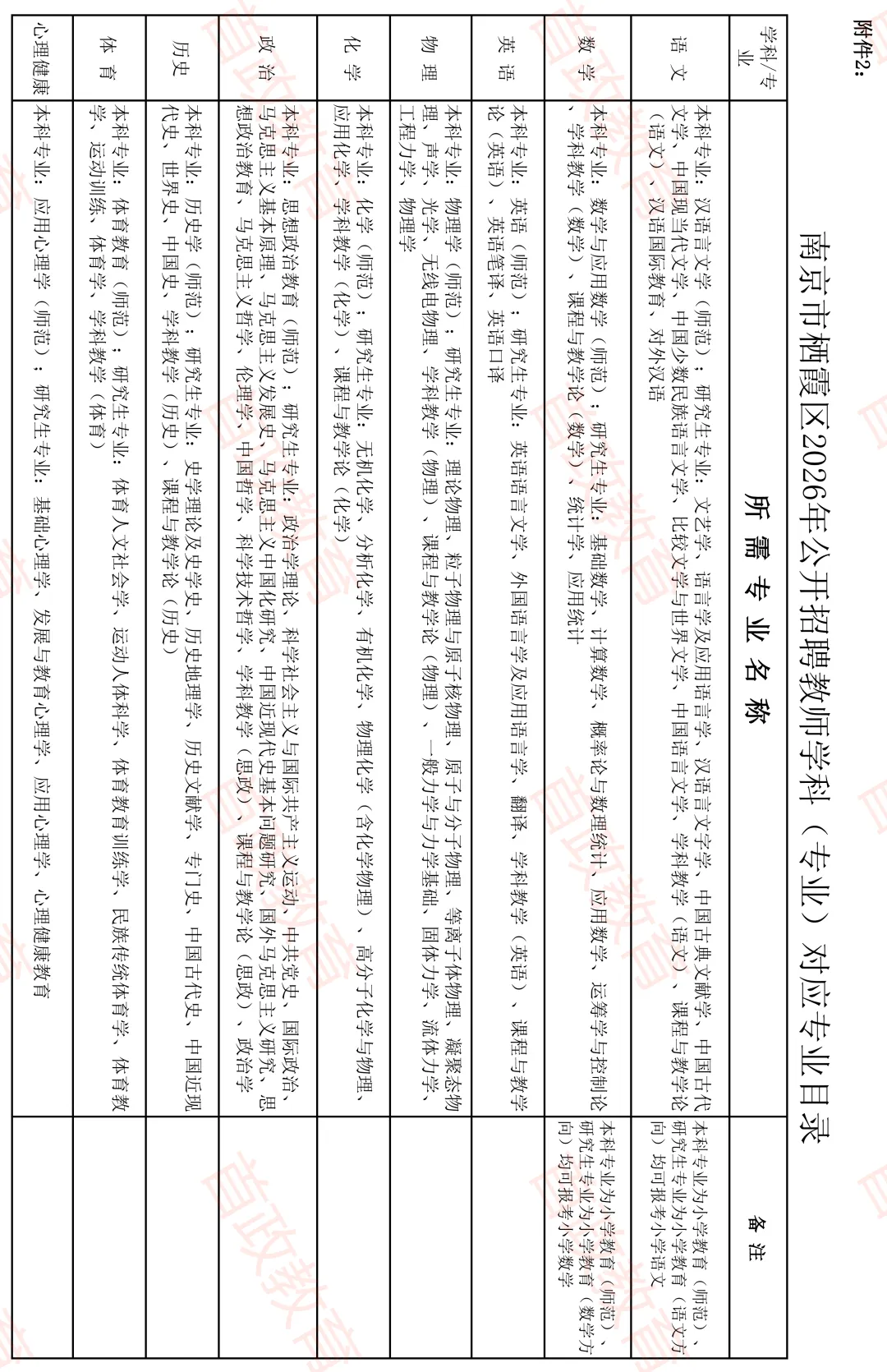 7.应聘人员所学专业必须符合招聘学科(专业)需求,招聘学科对应的专业需求详见《南京市栖霞区2026年公开招聘教师学科(专业)对应专业目录》(附件2)。