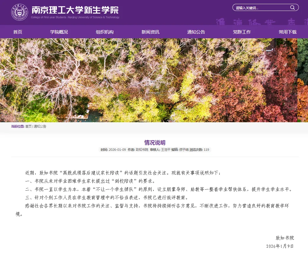 南京理工大学致知书院1月9日发布情况说明。
