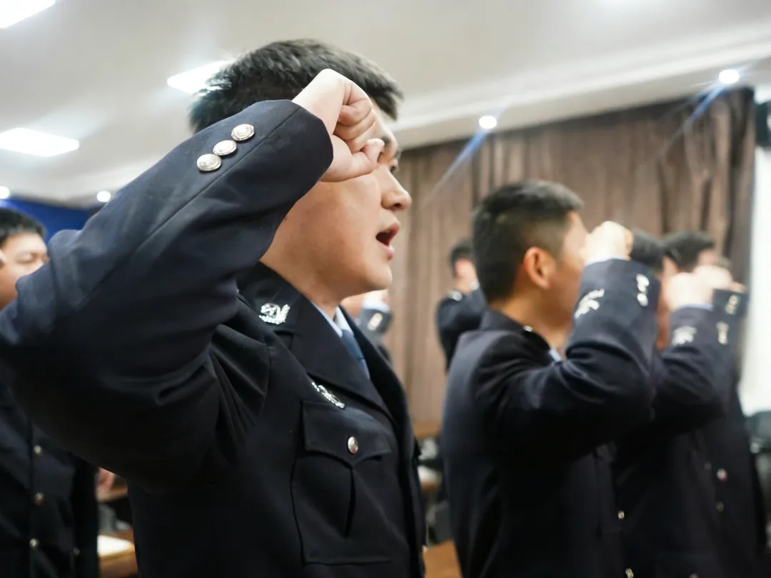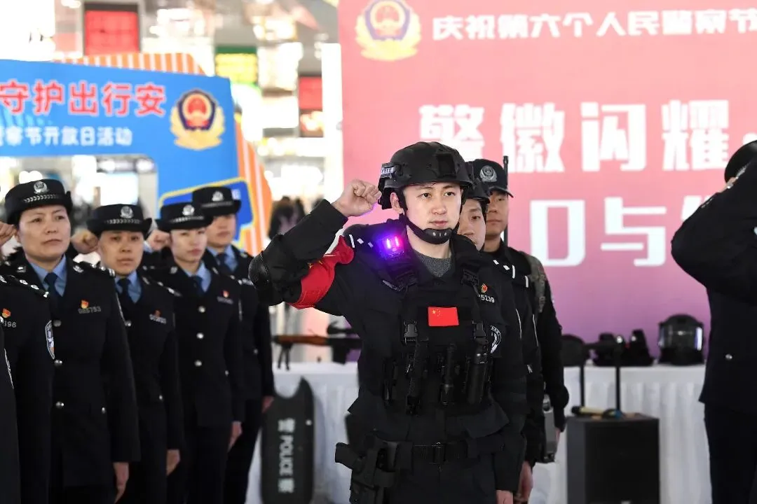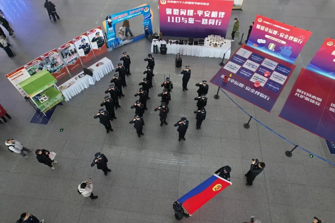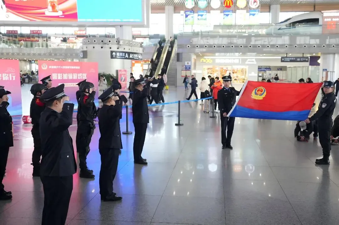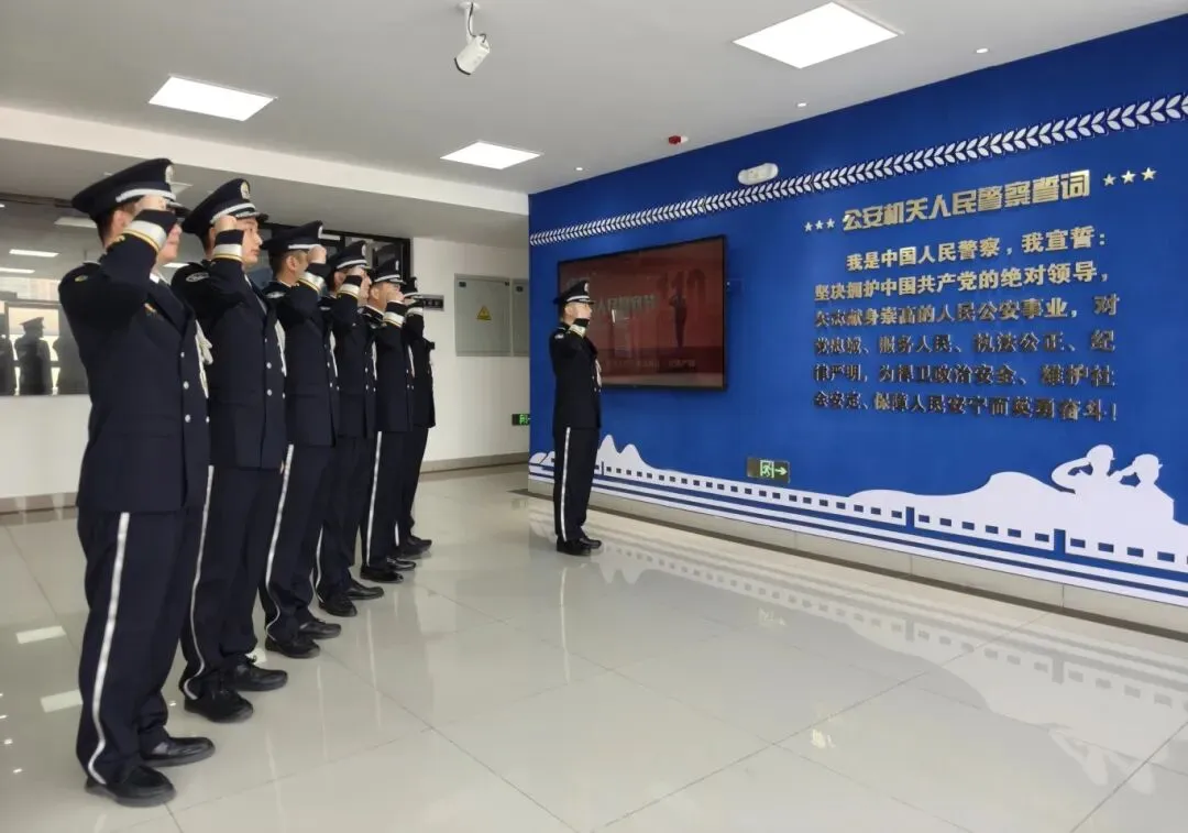 民警们身着笔挺警服,列队肃立,面向警旗高举右拳重温入警誓词:“我宣誓,我是中国人民警察……”每一个字都铿锵有力,听得人热血沸腾,现场旅客纷纷鼓掌点赞!