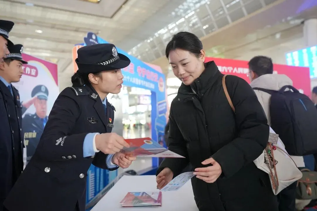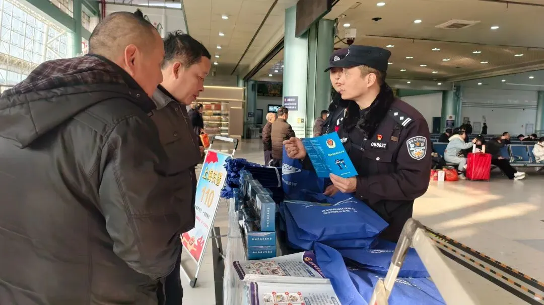 与此同时,海安站派出所联合市公安局反诈中心、110指挥中心等多警种部门在海安火车站候车厅搭起“安全驿站”。民警们化身“反诈宣传员”,针对购票退改签、冒充客服等高发诈骗套路深度剖析,用真实案例敲响防骗警钟。