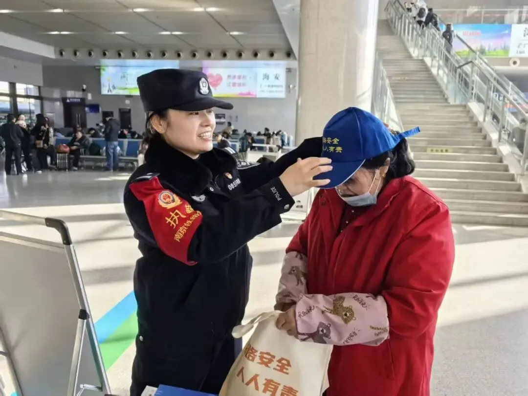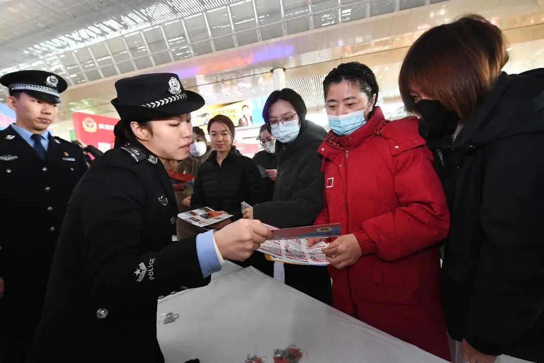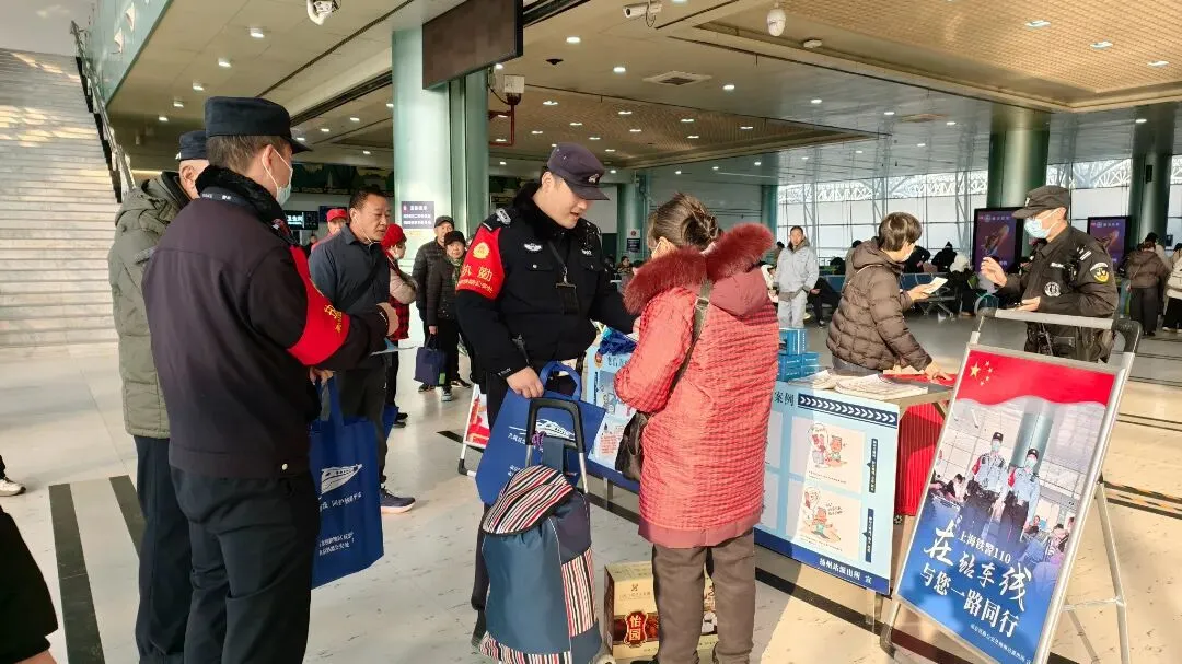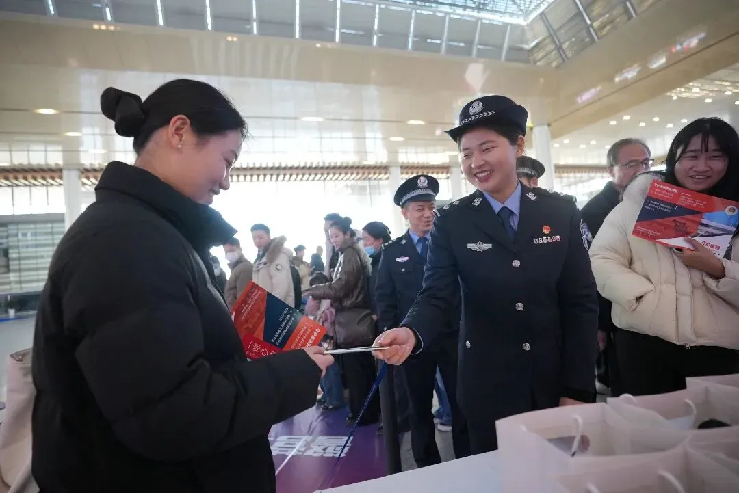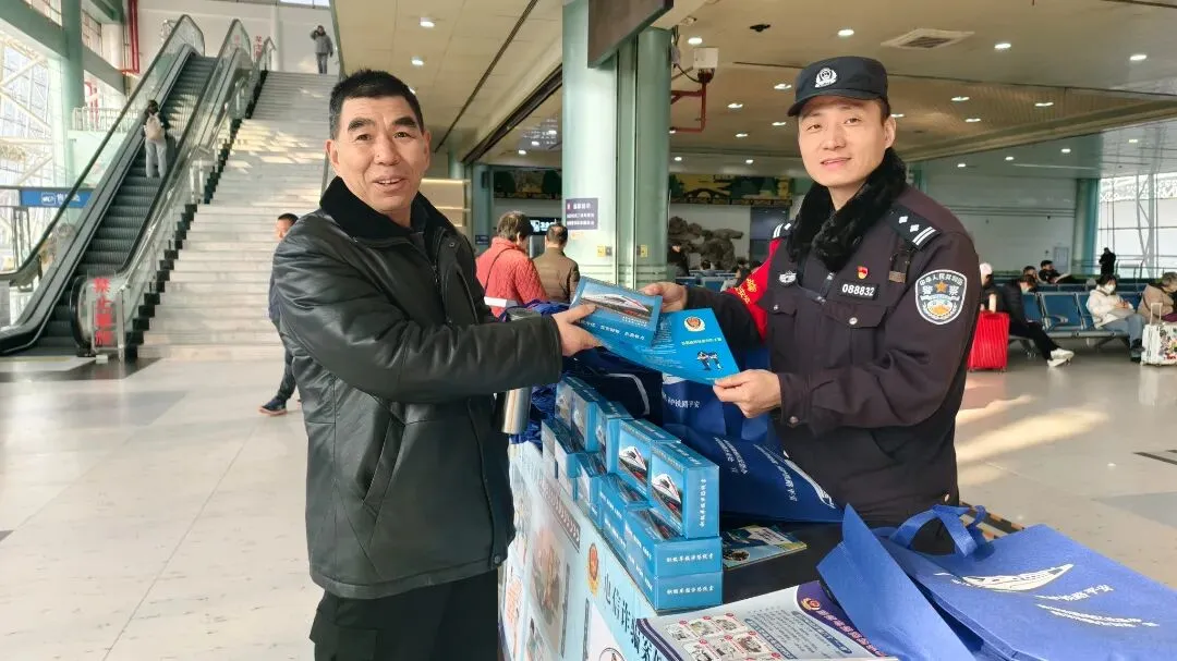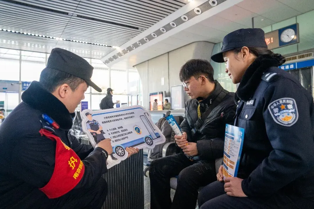 南通西站派出所联合多部门开展“沉浸式”普法宣传活动,安检民警详解危险品禁带规定,“流动服务岗”提供的临时身份证明办理、失物招领等便民服务,用“普法+服务”的双重模式传递温暖。