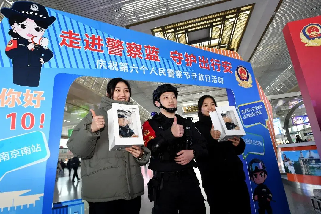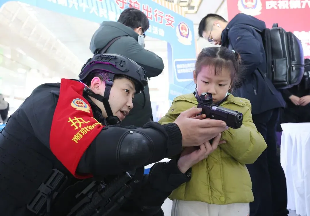 想知道110警察节的由来?民警蜀黍平时怎么接处警?宣传展示区全是干货!民警耐心地给大家答疑解惑,还指着展板讲解南京南站派出所“枫桥经验”的实践成果:“简单说就是小事不出站、矛盾不上交,咱们车站的调解室,专门化解旅客小摩擦~” 除此之外,见义勇为认定、反诈防骗、安全出行这些实用知识,也通过宣传手册一一送到大家手里,看完安全感up up!