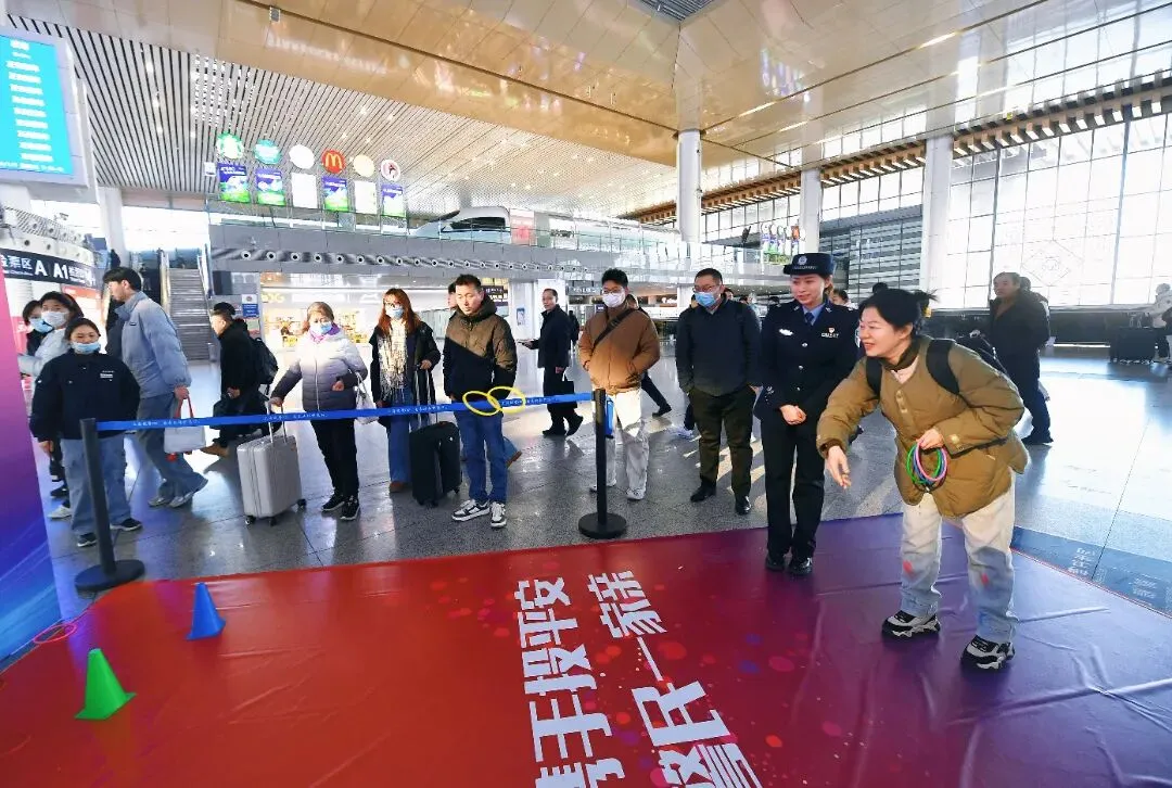 仪式结束后,宣传展示区、装备体验区、互动游戏区同步开放,精彩轮番上演,旅客们立马围上前开启打卡模式~