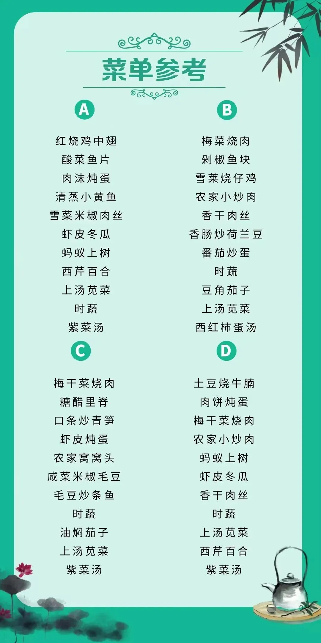 早餐、中餐、晚餐:酒店安排时间(桌餐)