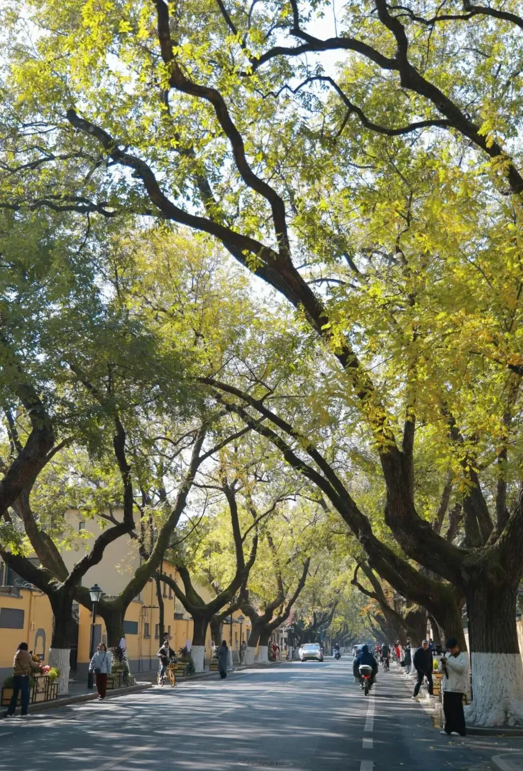 直到走进颐和路。这条路号称 “一条颐和路,半部民国史”,路两旁全是梧桐树。夏天的时候,梧桐树枝叶长得特别茂盛,交织在一起形成绿色的穹顶。阳光透过树叶缝洒下来,落在地上形成一片片光斑,像海底的阳光,安安静静的,让人心里舒服。走在颐和路上,能看到民国时期的老洋房,红墙黛瓦,被绿树围着,跟一幅油画似的。偶尔有风一吹,树叶沙沙响,像海的潮汐声。