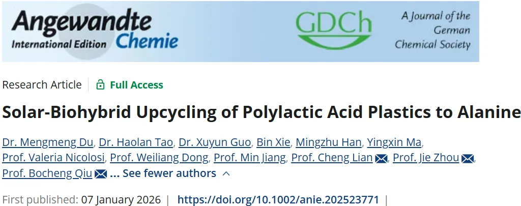 南京农业大学邱博诚&华东理工大学「国家高层次人才」练成最新Angew | 太阳能-生物杂合升级回收聚乳酸塑料制丙氨酸!