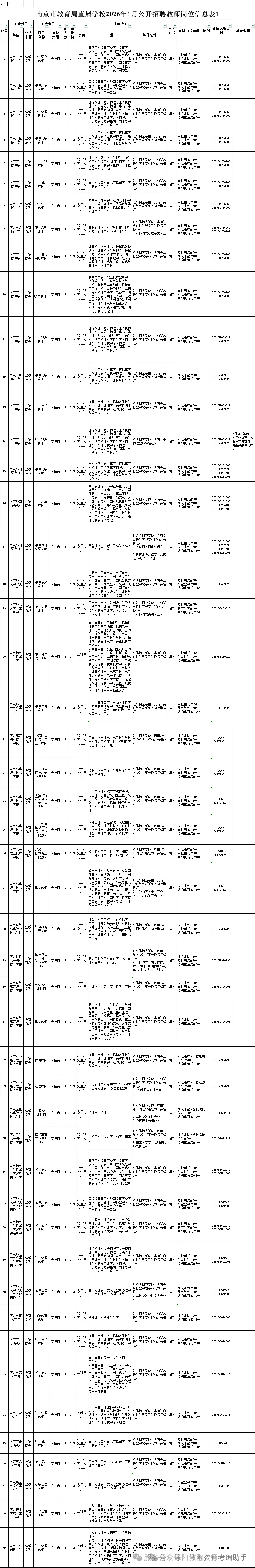1.南京市教育局直属学校2026年1月公开招聘教师岗位信息表1