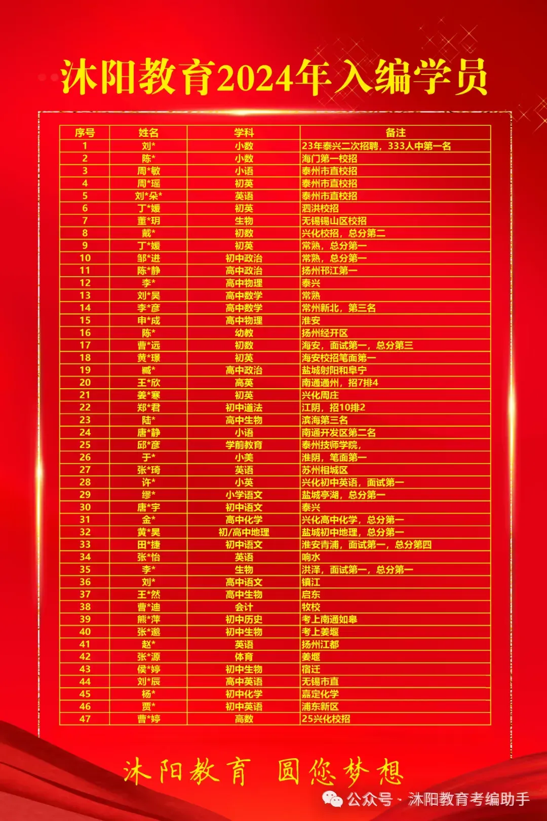 (3)江宁区教育局在资格复审合格和面试确认的应聘人员中,按照从高分到低分顺序,以实际岗位招聘数的相应比例(同开考比例)确定进入面试人员名单。