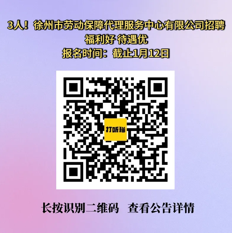 【徐州招聘】3人!徐州市劳动保障代理服务中心有限公司招聘!